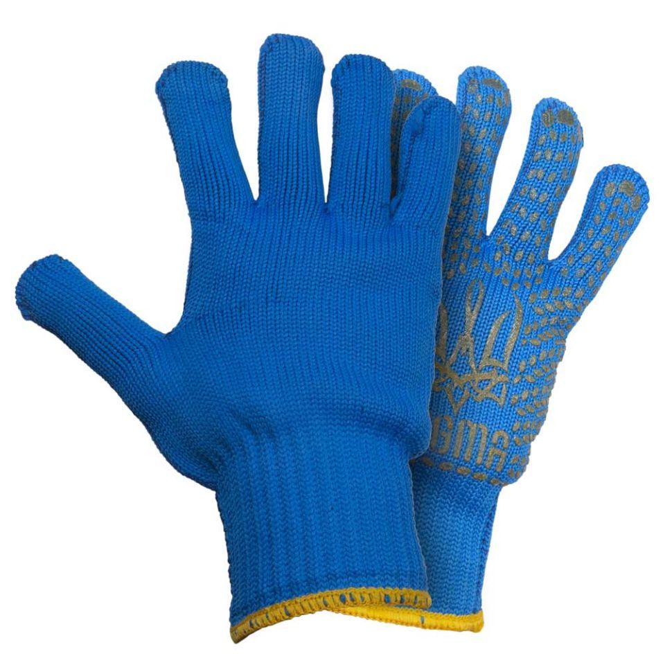 Трикотажные перчатки с точечным ПВХ покрытием р10 Тризуб (синие), кратно 12 парам SIGMA 9442621