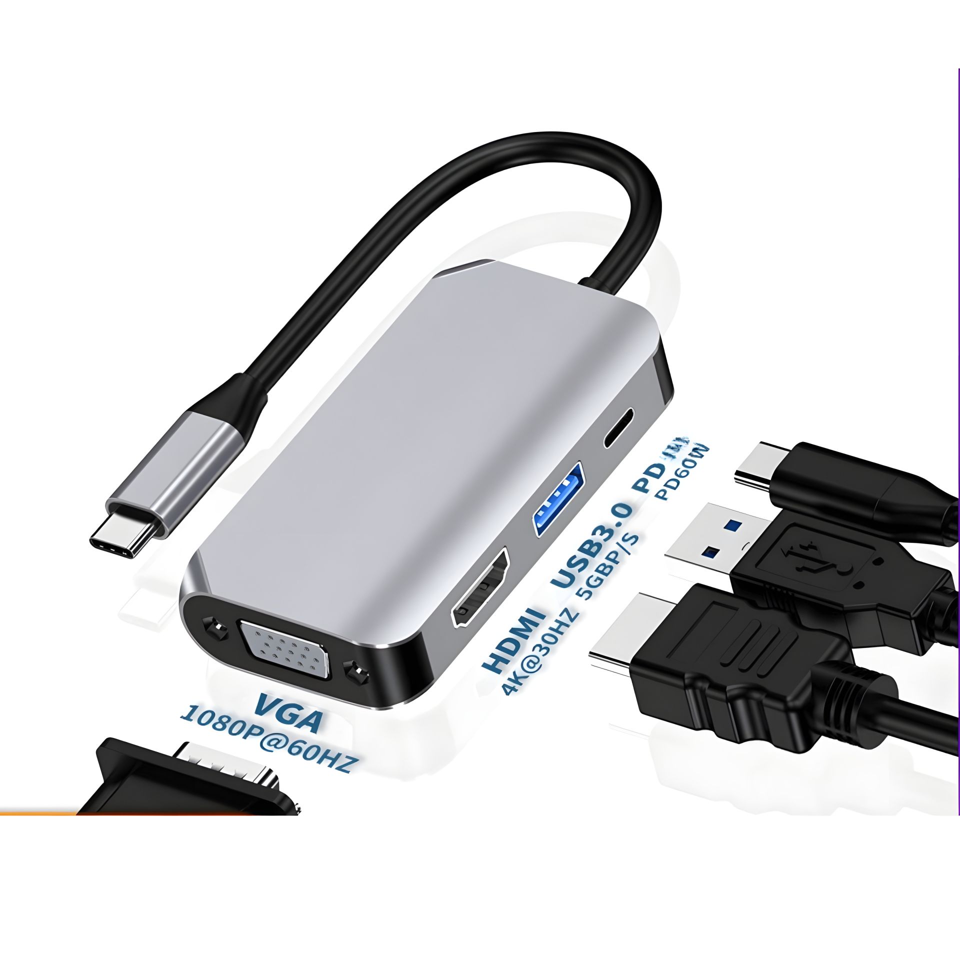 Адаптер-переходник Haowei HW-6004 4in1 Type-C to HDTV/VGA/Type-C PD 60W/USB 3.0