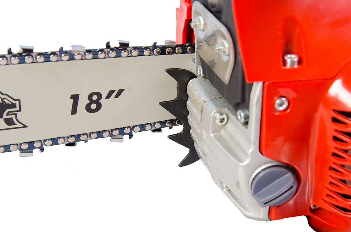 Отличная модель бензопилы MPT MGS5802-18, которая сослужит вам в любой сезон. Идеальный вариант для заготовки дров или других работ с деревом. Мощность бензопилы составляет 2200 Вт, что позволит вам работать даже с твердыми породами дерева. Длина шины в 450 мм справится даже с крупными стволами. 2-хтактный бензиновый двигатель с воздушным охлаждением, автоматическая подача масла на цепь, алюминиевый корпус стартера – все эти преимущества вы получите, купив эту модель. • 2-хтактный бензиновый двигатель с воздушным охлаждением