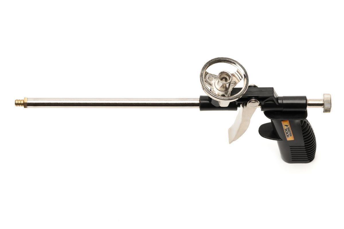 Конструкция пистолета позволяет равномерно подавать пену и контролировать ее расход, повышая точность и аккуратность выполнения работ.