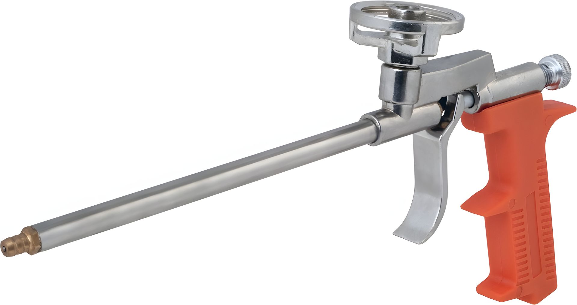 Применяется для нанесения профессиональной монтажной пены при установке оконных и дверных коробок, других строительных конструкций. Подача пены регулируется с помощью винта, расположенного над рукояткой пистолета (вращение по часовой стрелке уменьшает количество подаваемой пены). Тефлоновое покрытие препятствует прилипанию пены.