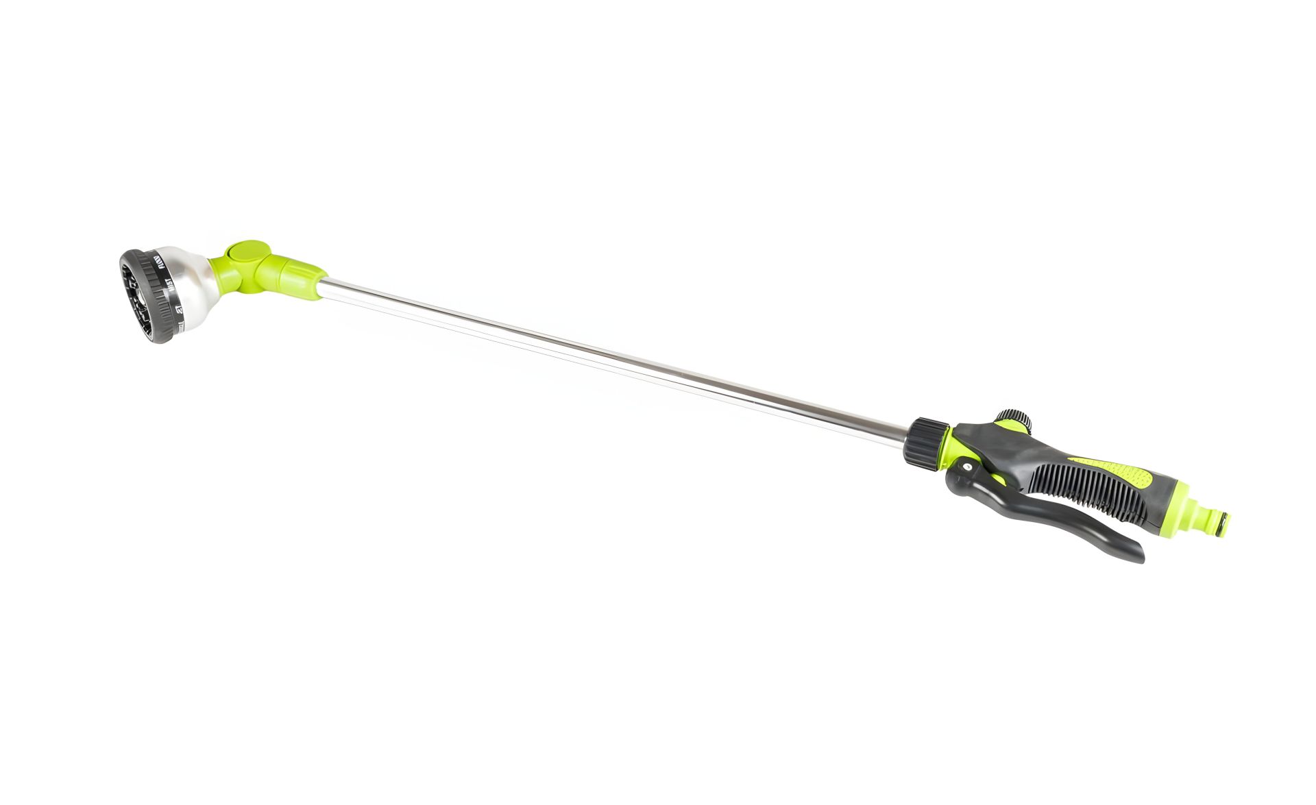 Пистолет для полива JET LINE 10 режимов штанга 800 мм - это идеальный выбор для удобного и эффективного ухода за садом! • 10 фиксированных режимов от жесткой точечной струи до мягкого тумана: жесткая струя, треугольная, маленький душ, конус, веерный, большой душ, угловой, плоский, водопад, туман
