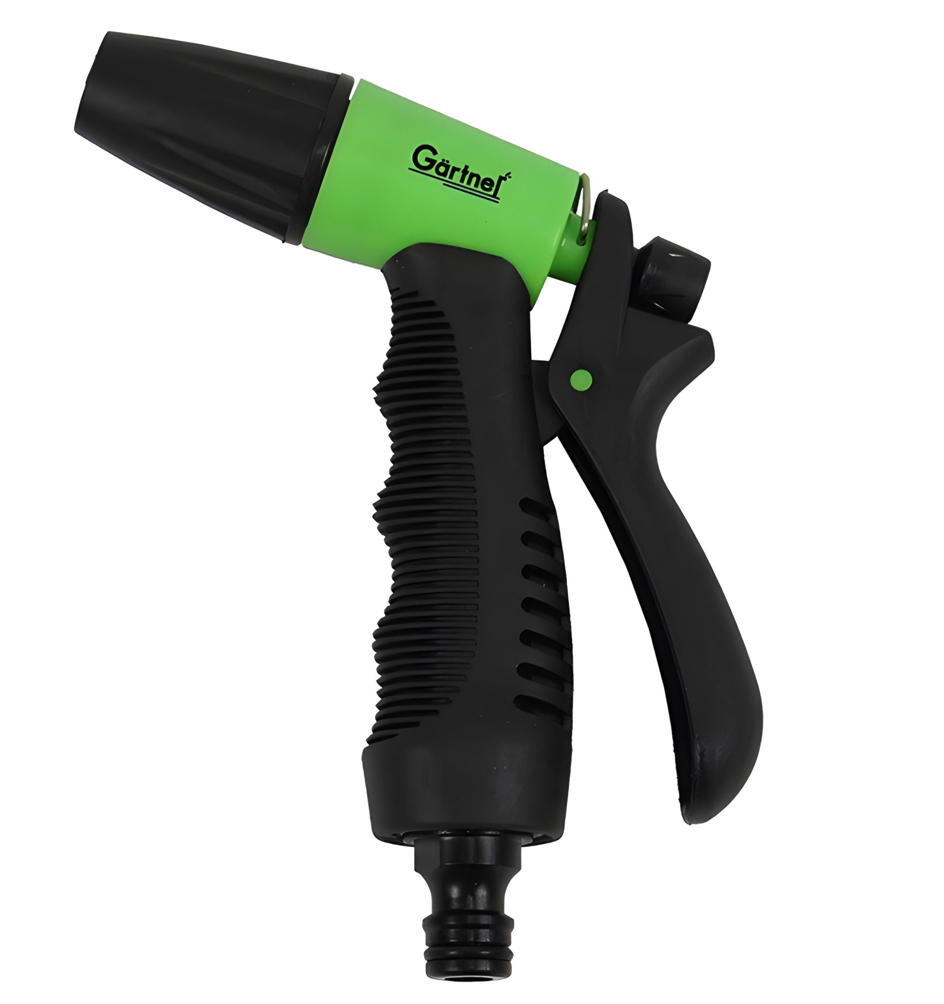 Пистолет-распылитель Gartner предназначен для полива растений при подключении к водопроводному шлангу с помощью соединителя. Позволяет плавно регулировать направление и ширину выходящей струи во время полива.