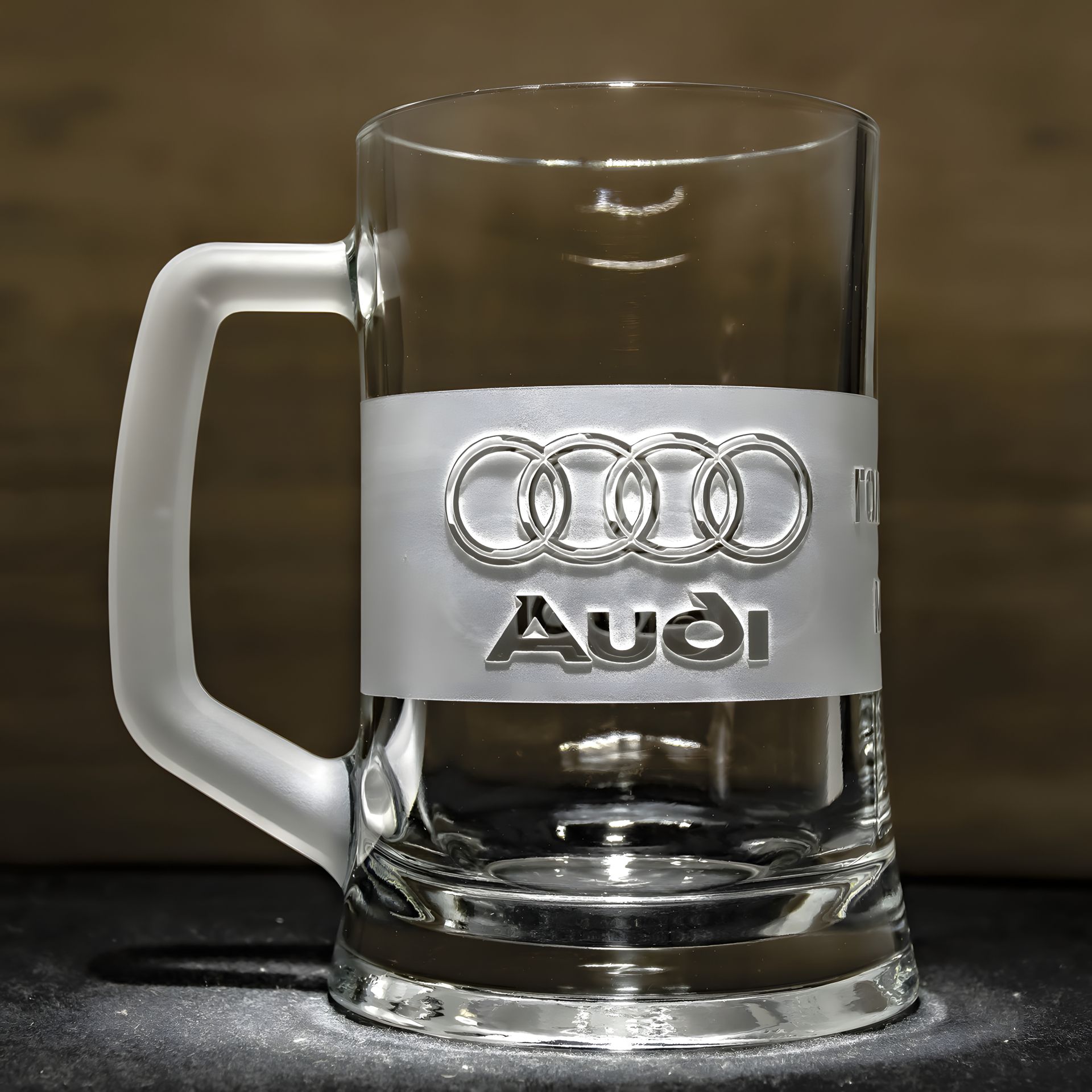 Пивной бокал с гравировкой "Audi головного мозга" с матовой ручкой — подарок для фаната Audi