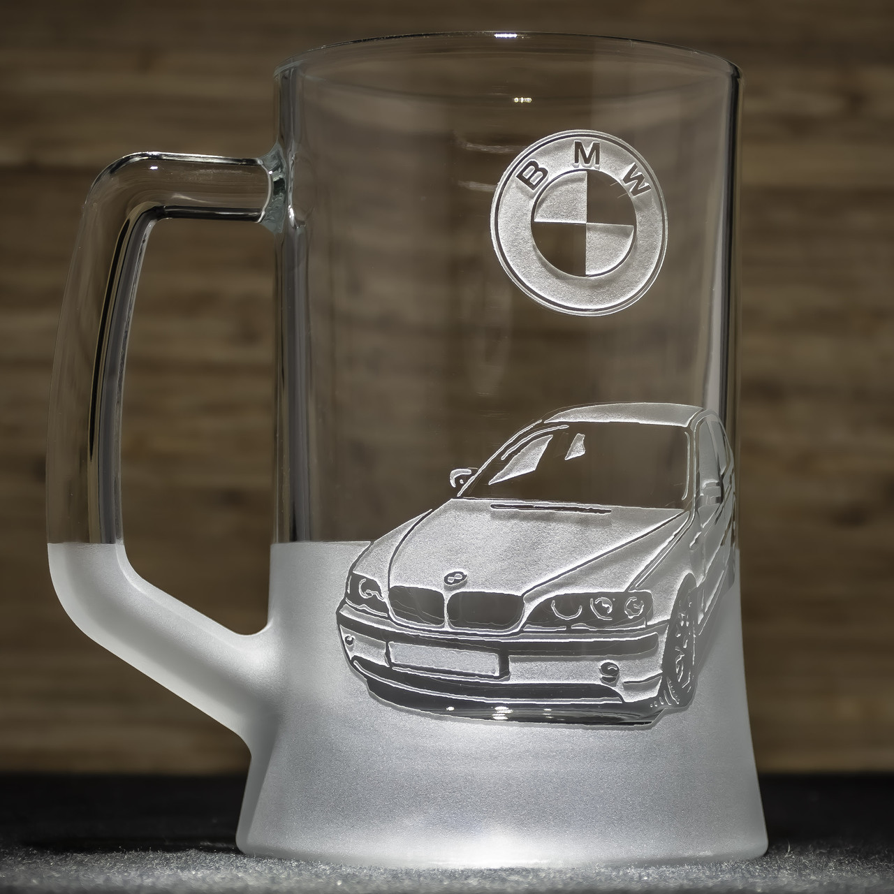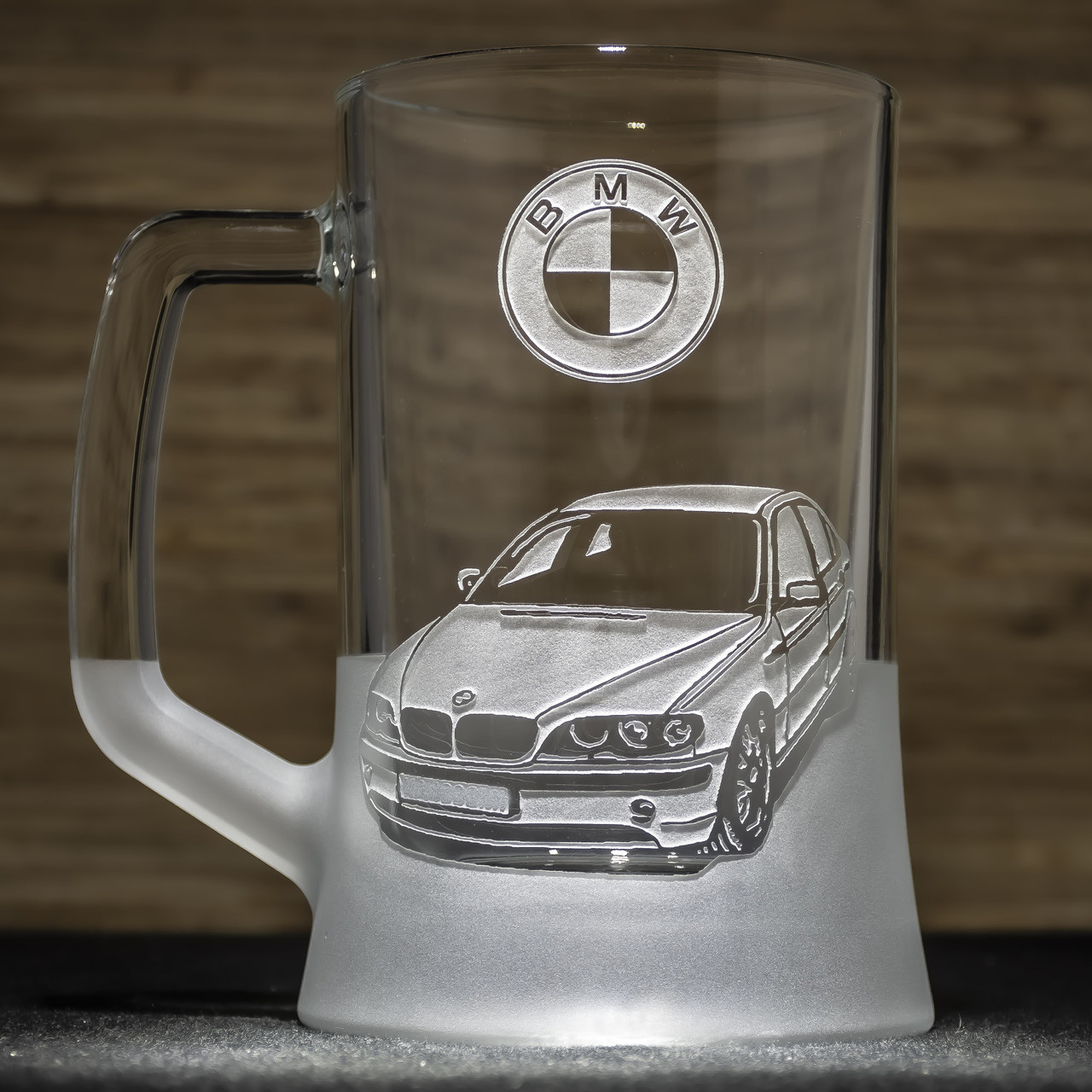 Пивной бокал с гравировкой автомобиля BMW E46 - подарок для автолюбителя