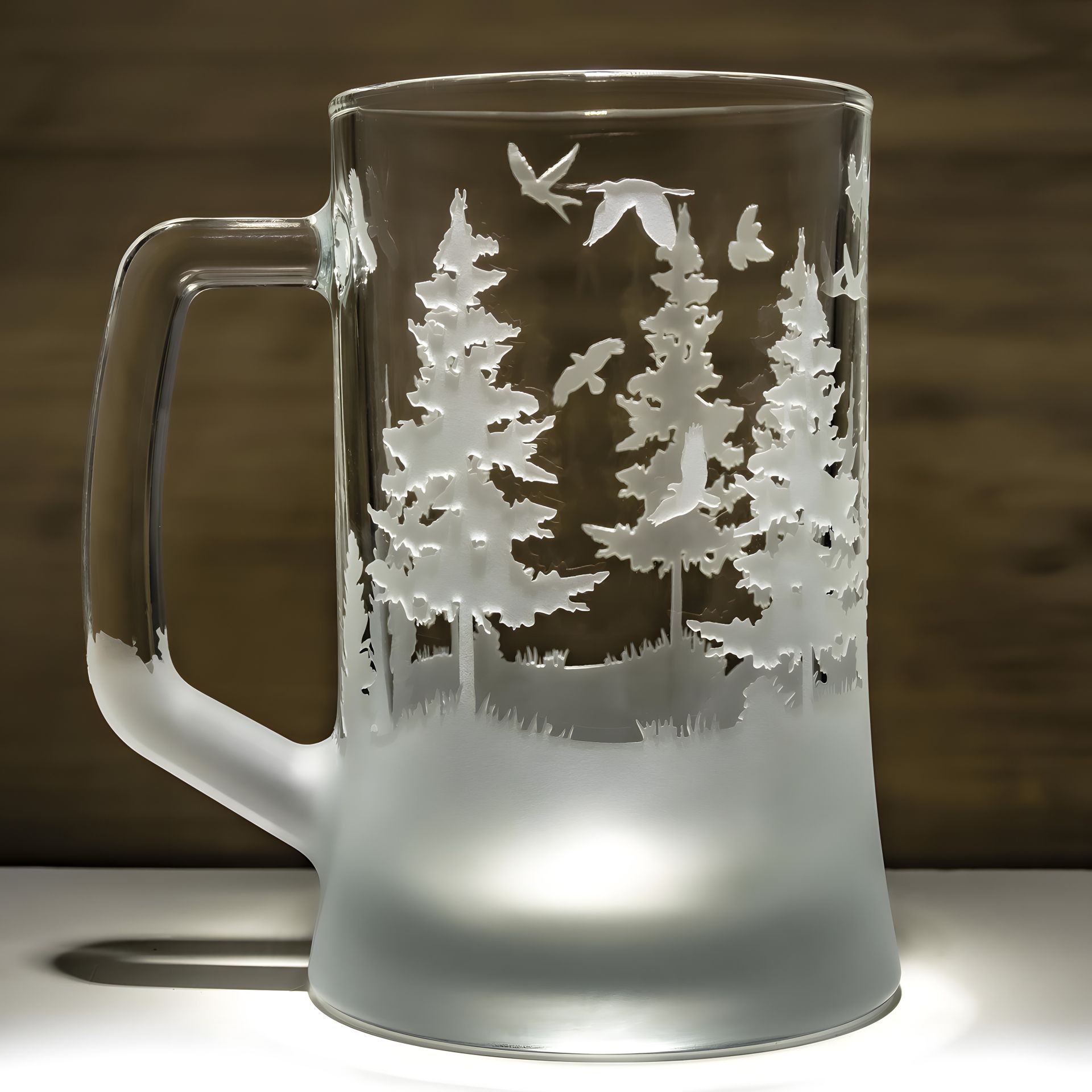 Пивной бокал с гравировкой "Дикая природа лес птицы"