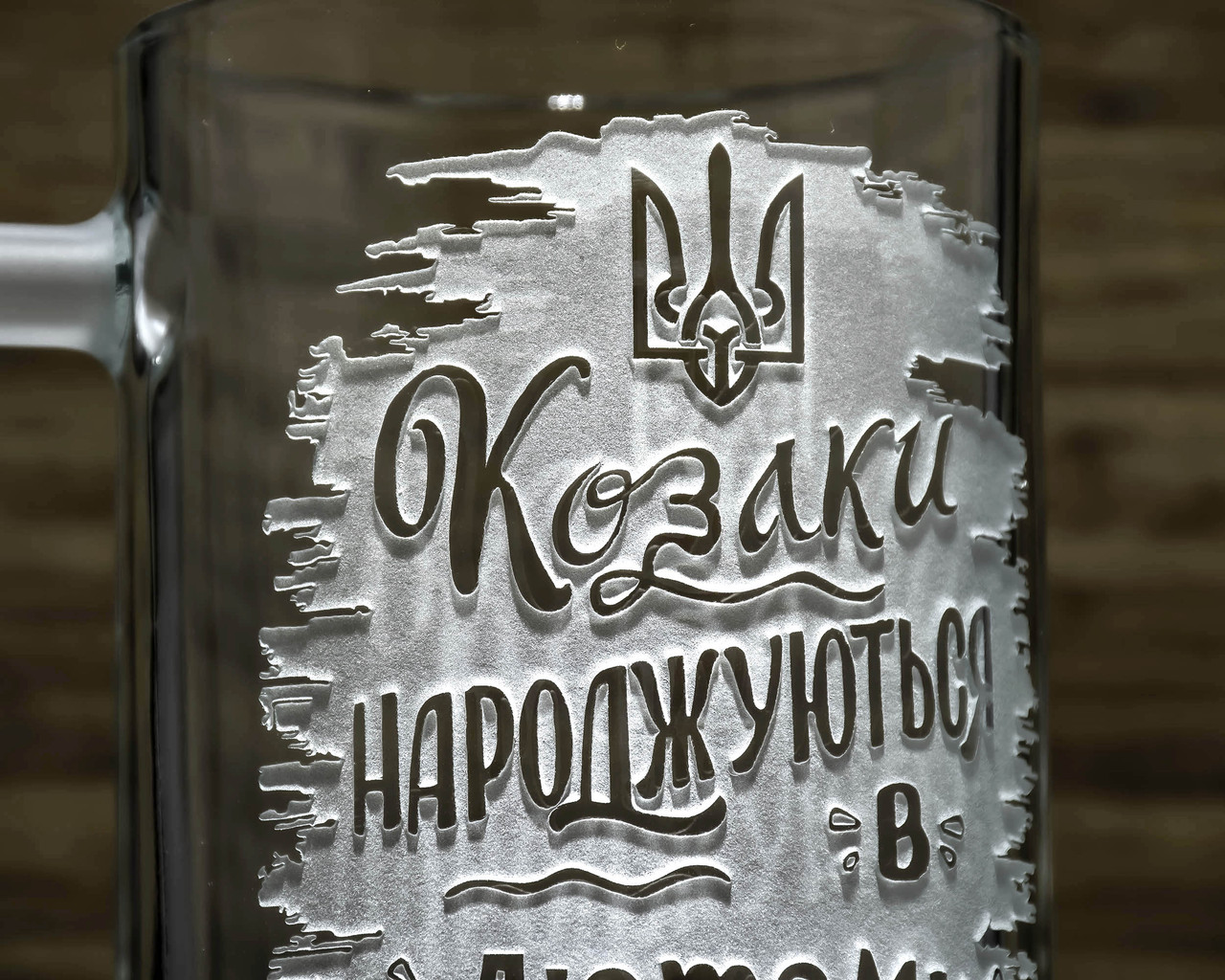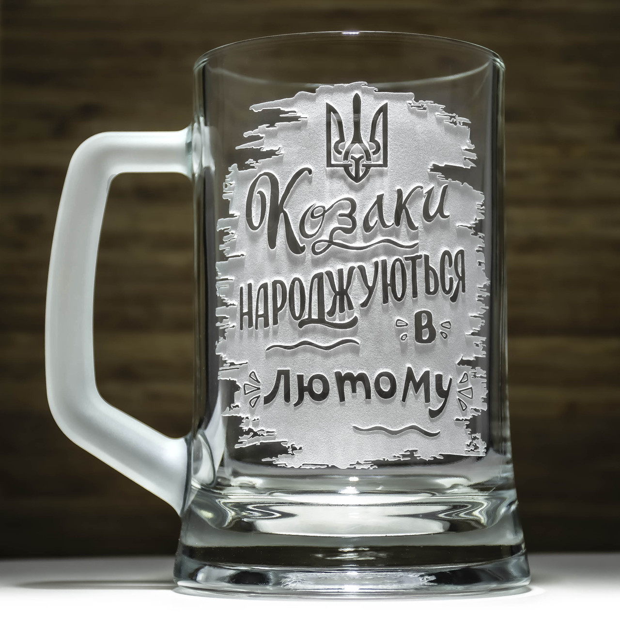 Пивной бокал с гравировкой надписи Козаки рождаются в феврале