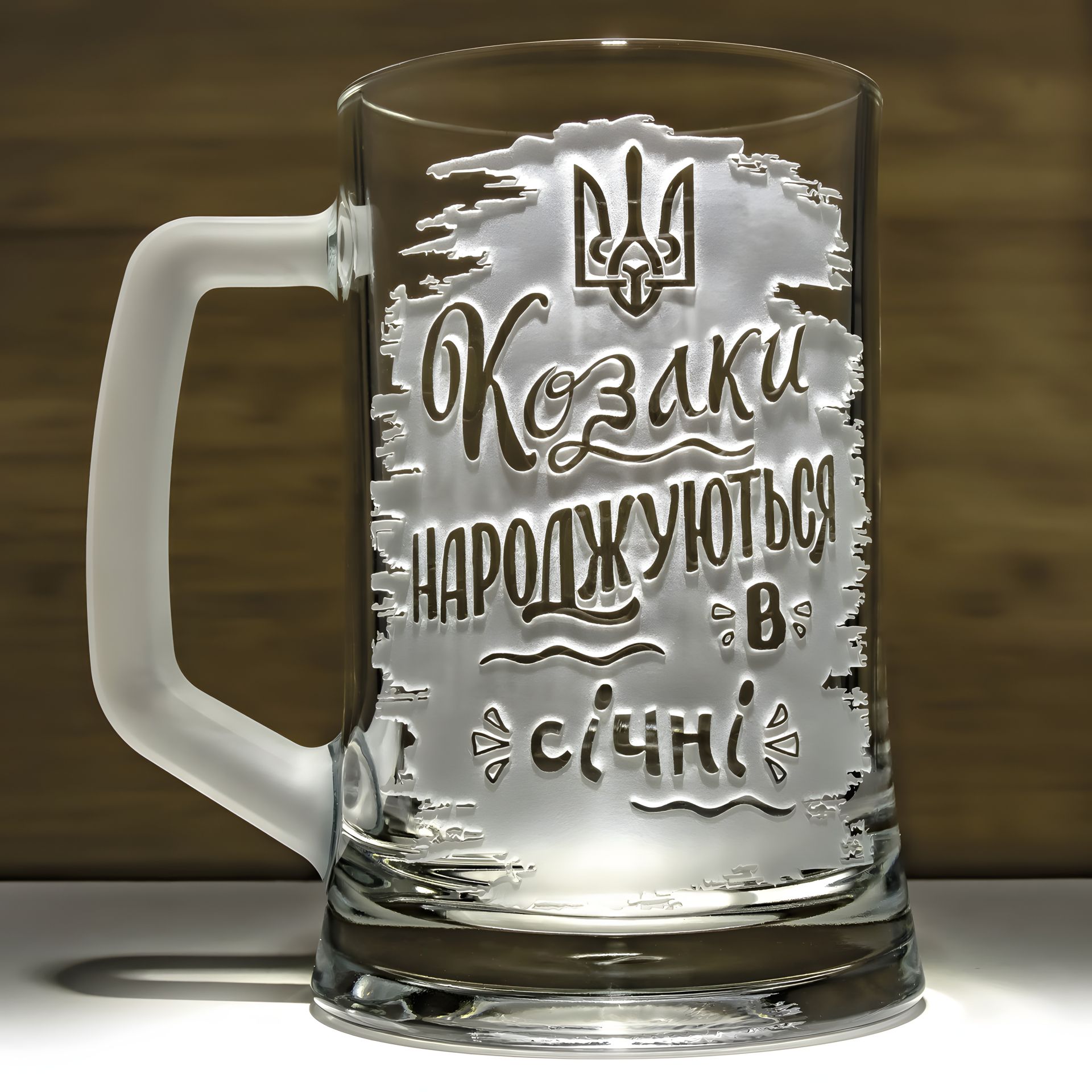 Пивной бокал с гравировкой "Козаки рождаются в январе"