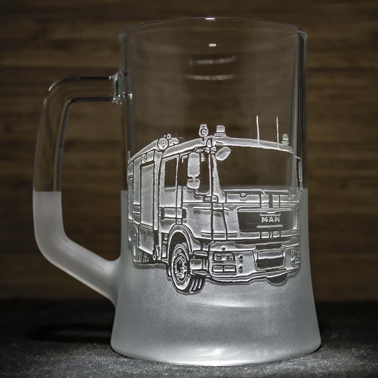 Пивной бокал с гравировкой Пожарной машины MAN - подарок для пожарного, работника ДСНС, автолюбителя