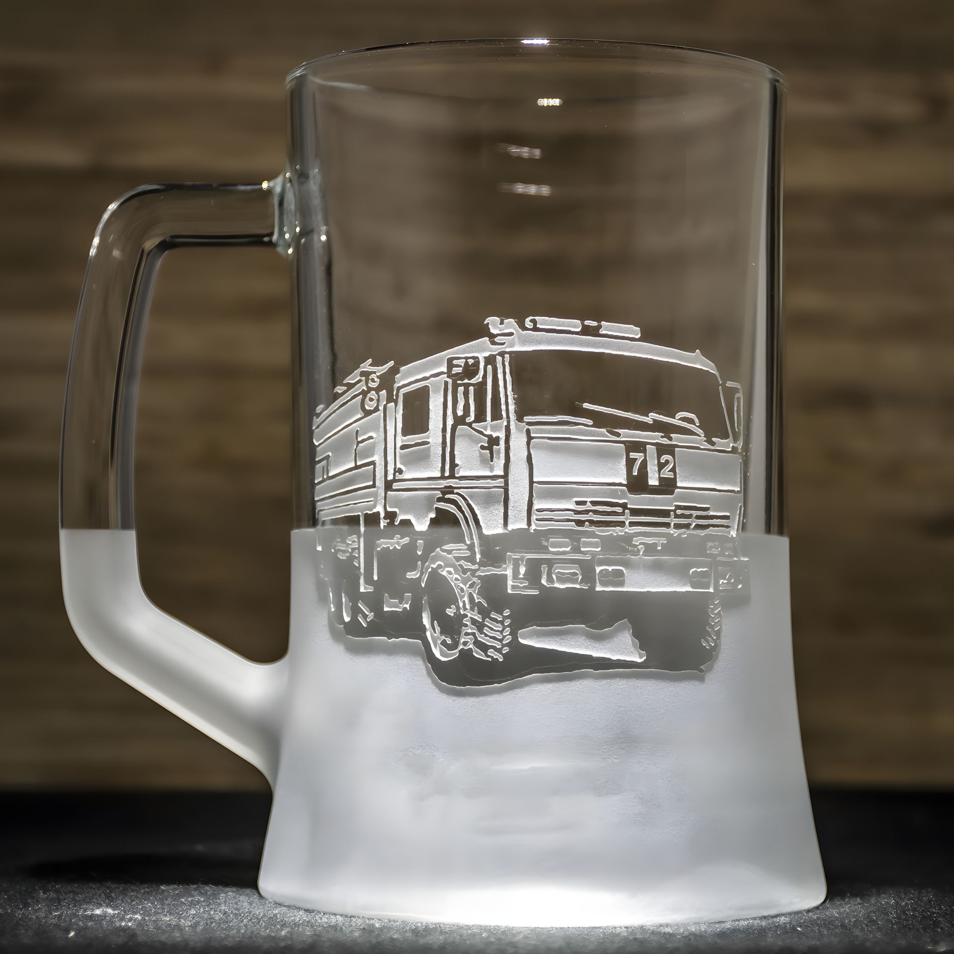 Пивной бокал с гравировкой пожарной машины - подарок для пожарного, работника ДСНС, автолюбителя