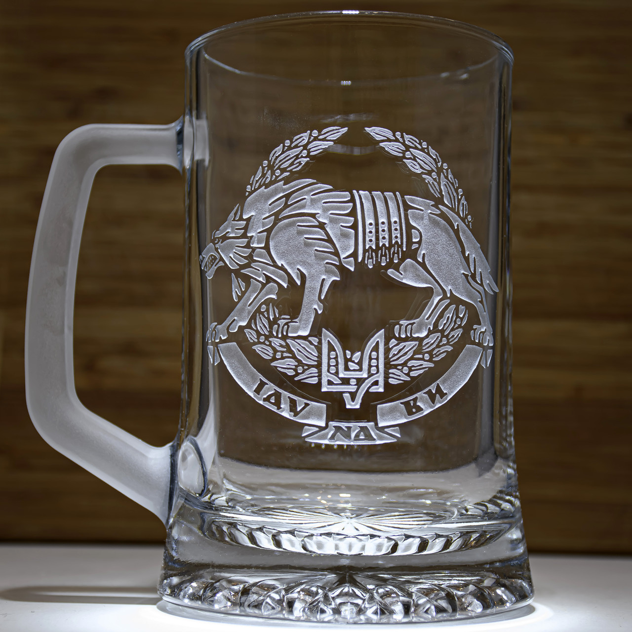 Стеклянная кружка для пива с глубокой механической гравировкой Силы специальных операций Вооружённых сил Украины "ИДУ НА ВЫ" в подарочной коробке.