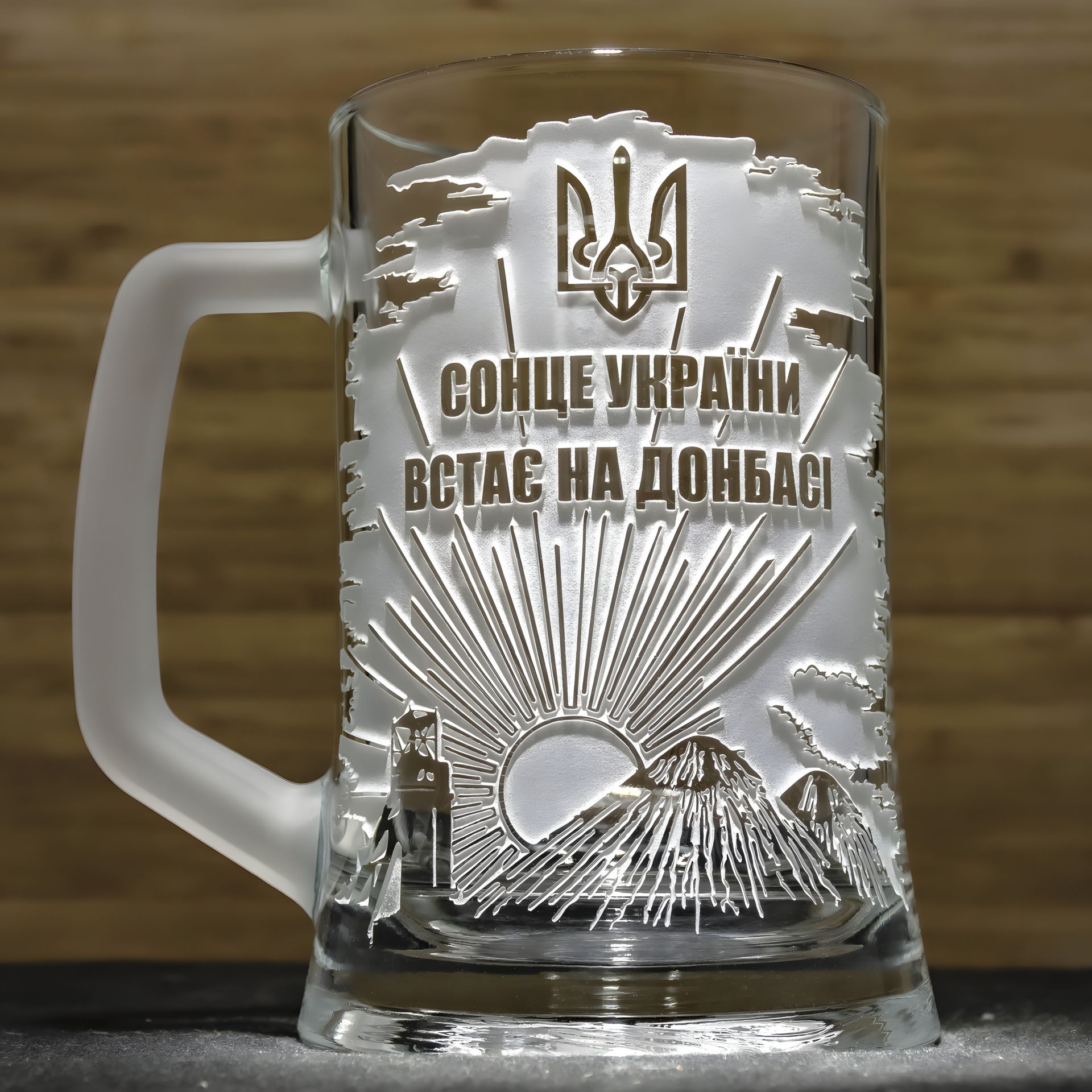 Бокал для пива с гравировкой "Солнце Украины встает на Донбассе"