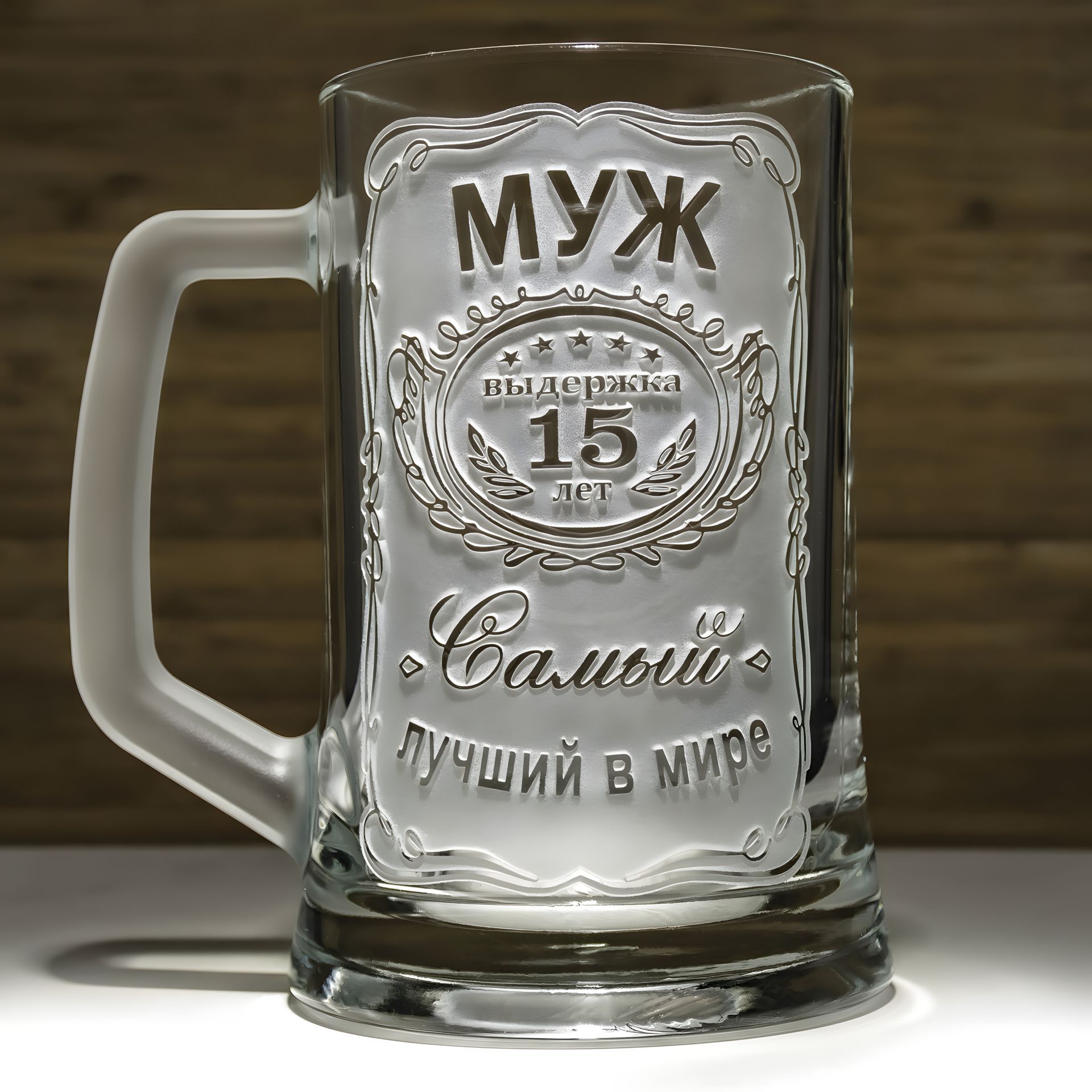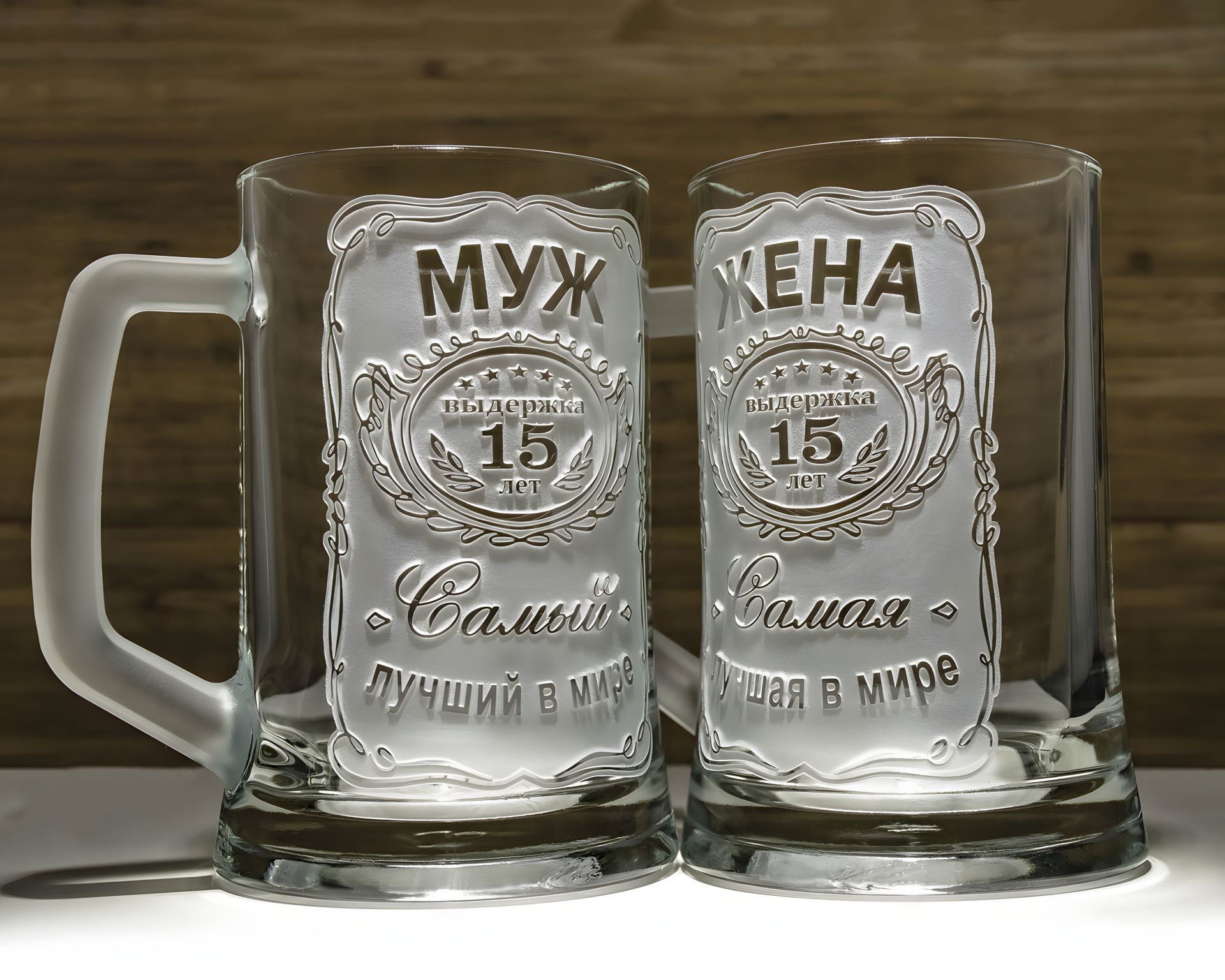 Пивные бокалы на годовщину свадьбы с гравировкой Муж №1 Самый Лучший в мире и Жена №1 Самая Лучшая в мире Выдержка 15 лет / можем изготовить с любой датой /