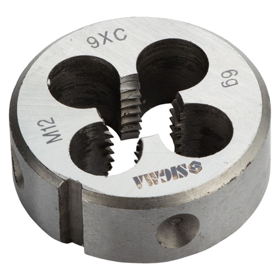Плашка М12×1.75мм SIGMA (1604351) предназначена для нарезания или калибрования наружных резьб. Для работы закрепляются в держателях для плашек со стопорными винтами. Для фиксации на наружном цилиндре плашки существуют конические углубления и угловой паз. При нарезании, резьбу, предварительно, смазывают консистентной смазкой.