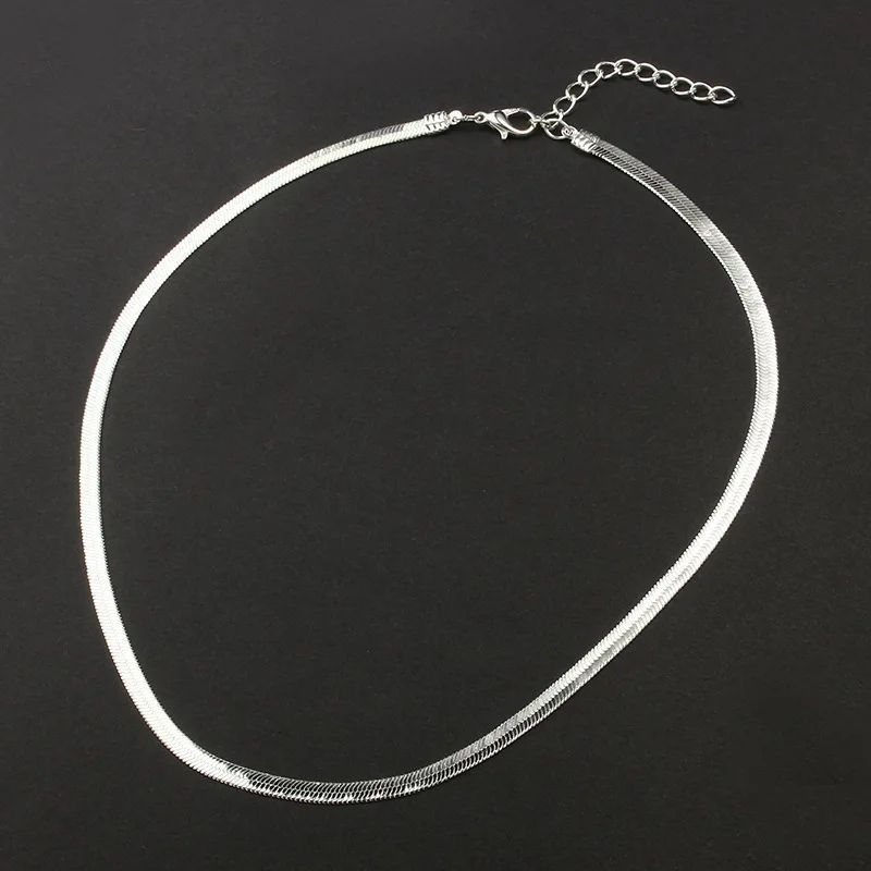 Плоская цепочка в виде змеи Цепь серебренный цвет цепочка-чокер унисекс