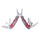 - Содержимое: щипцы, плоские лезвия, пила, напильник, крестовая отвертка, плоская отвертка, открывалка для бутылок, консервный нож, ножницы