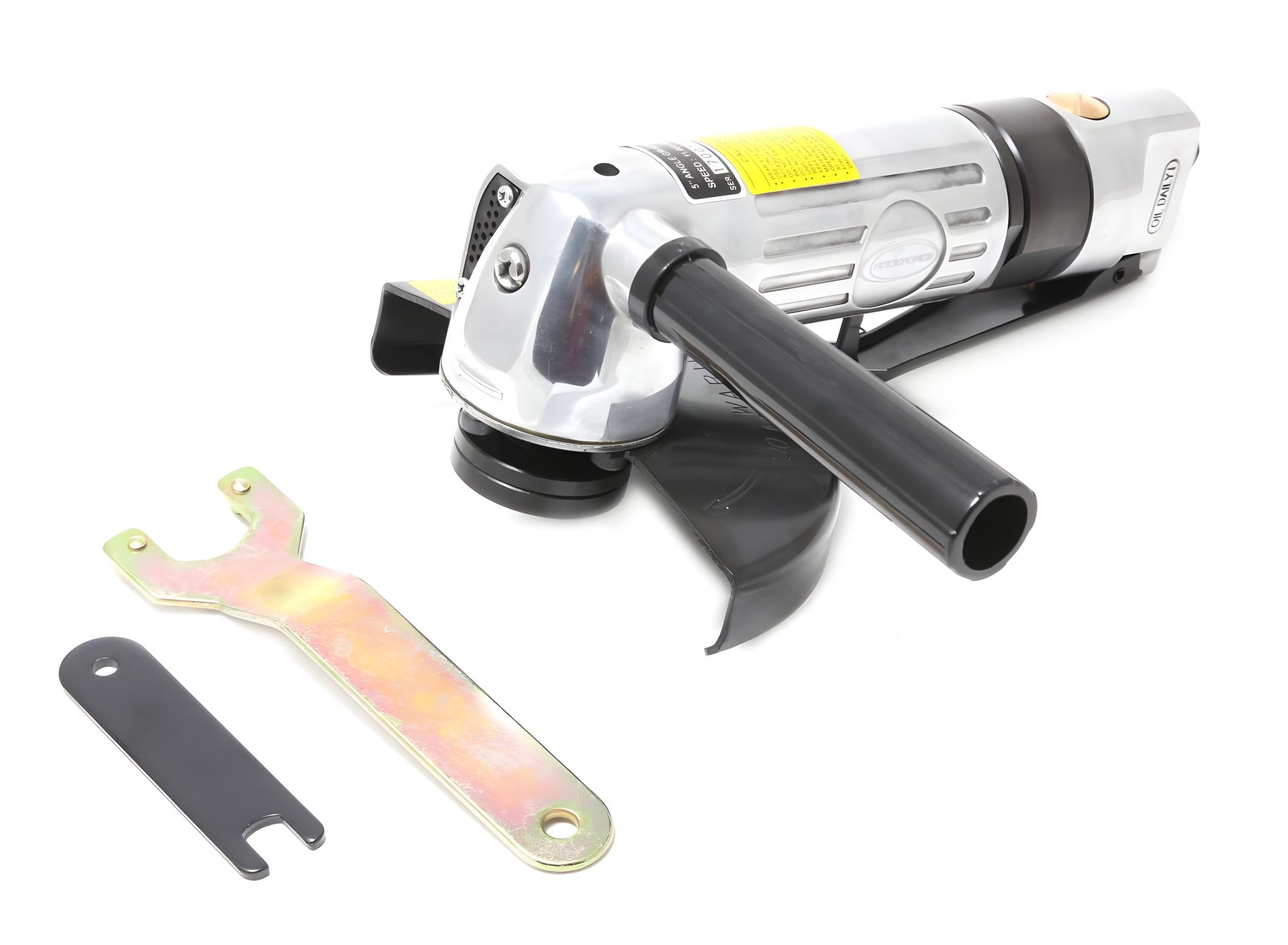 Пневматическая углошлифовальная машина ROCKFORCE RF-82601A предназначена для шлифования, зачистки, резки различных материалов (дерево, металл, пластик) с помощью дисков диаметром до 125 мм.