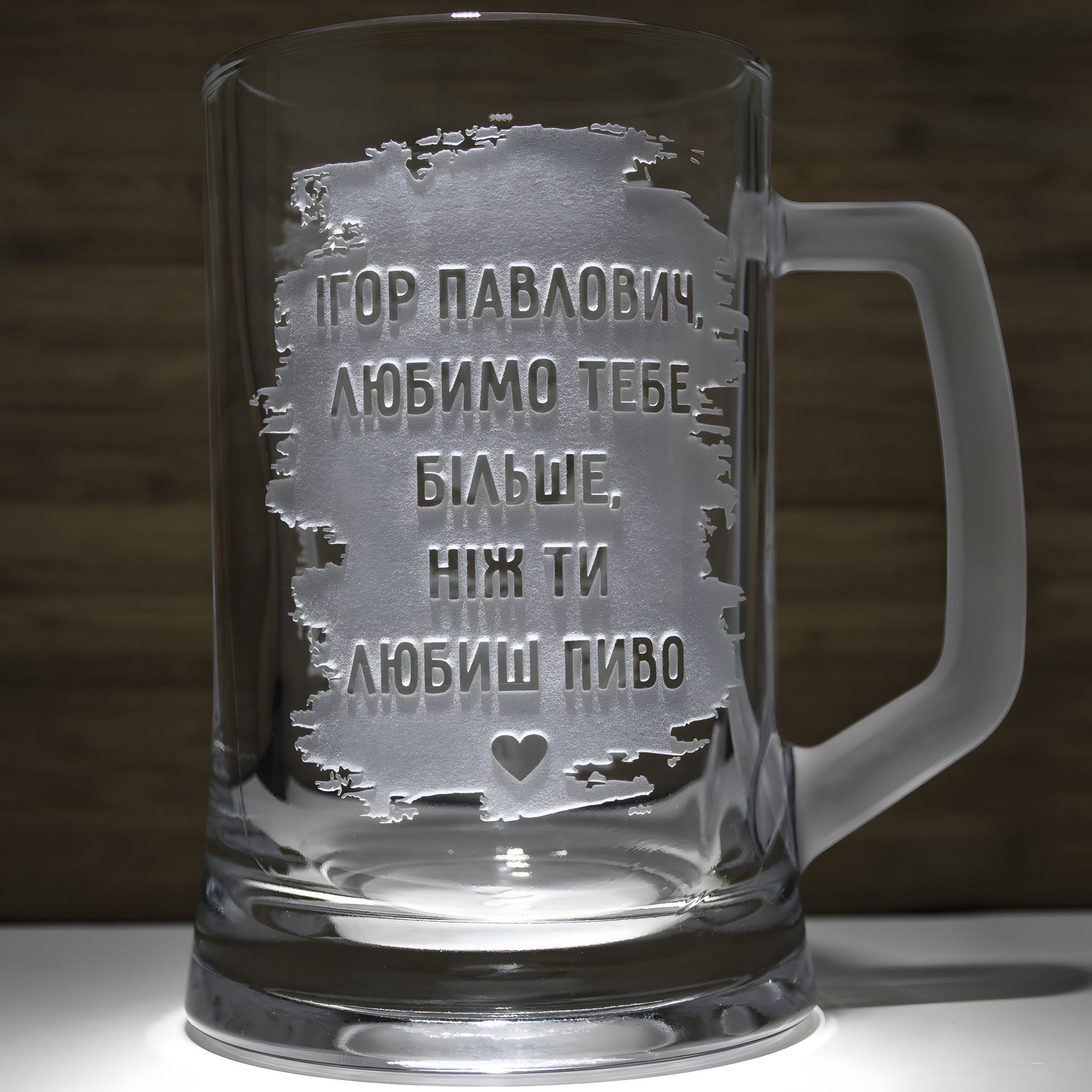 Подарочная кружка для пива с гравировкой текста