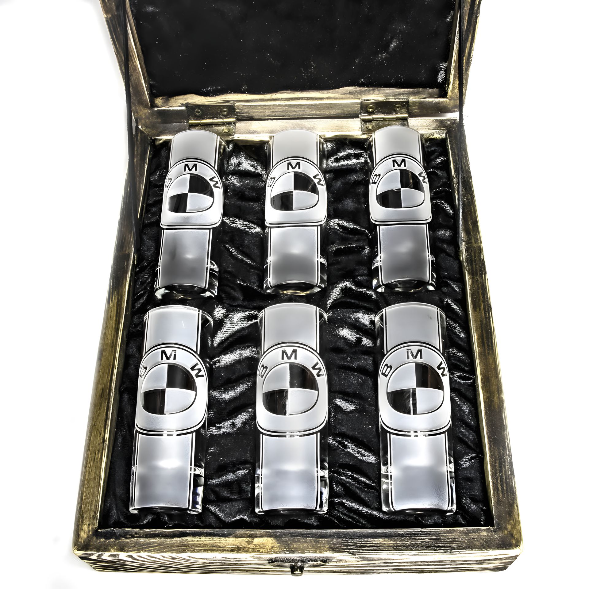 Подарочный набор рюмок с гравировкой BMW в деревянной коробке