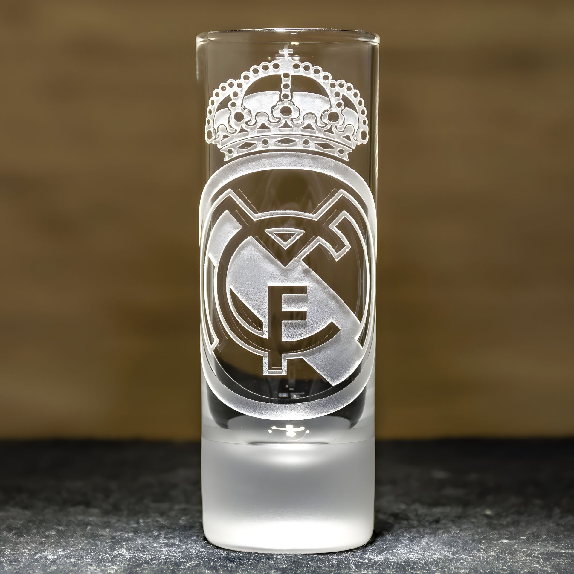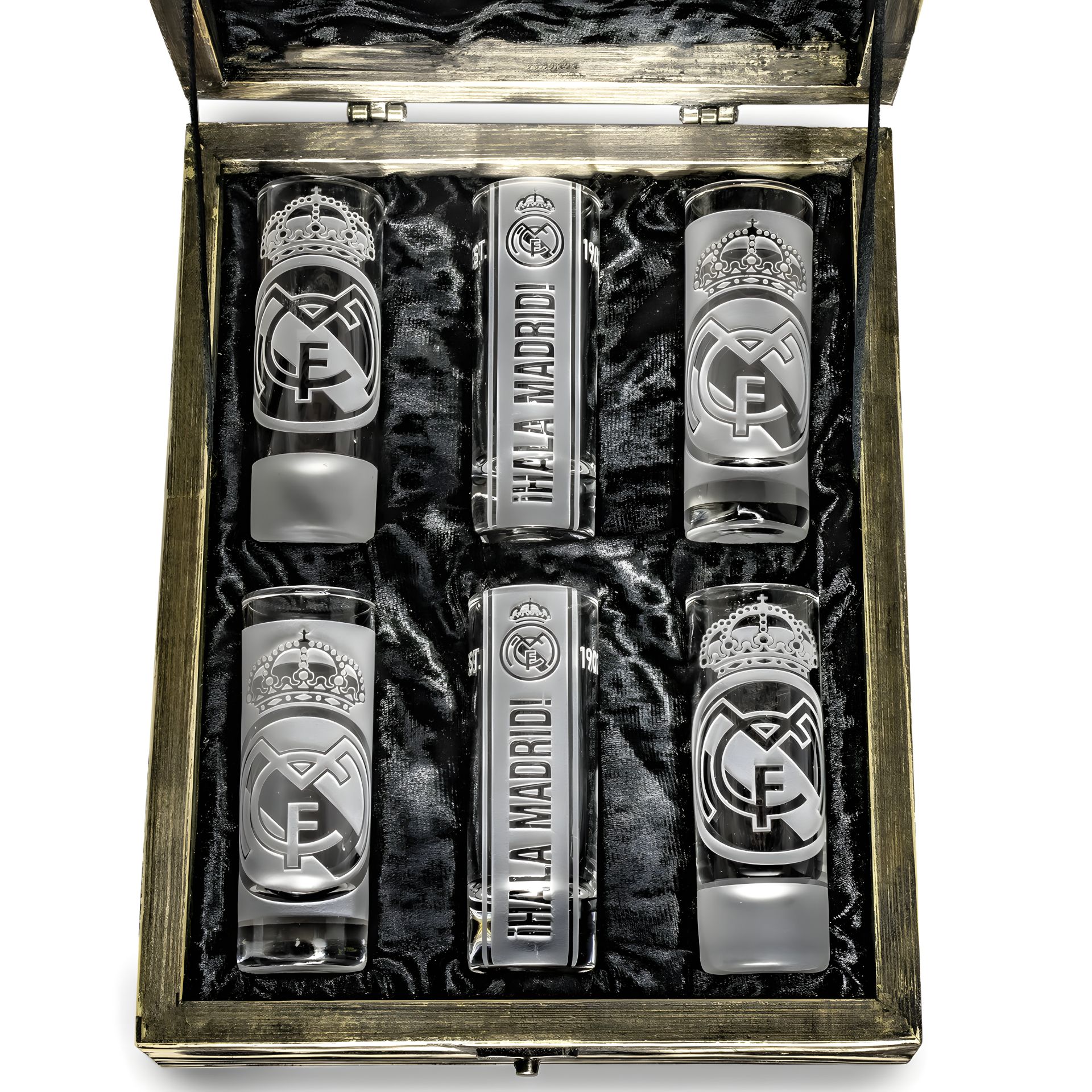 Подарочный набор рюмки с гравировкой ФК Реал Мадрид FC Real Madrid в деревянной подарочной коробке