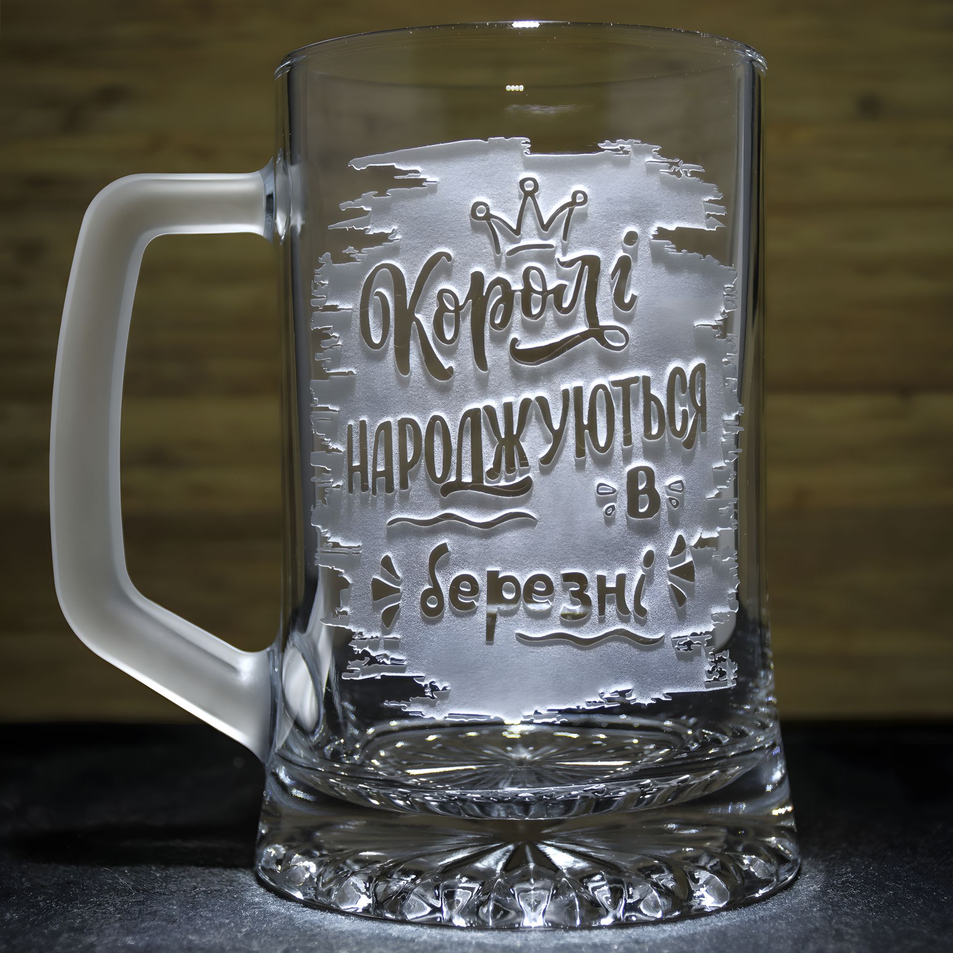Подарок на день рождения - Бокал для пива с гравировкой "Короли рождаются в марте" с матовой ручкой
