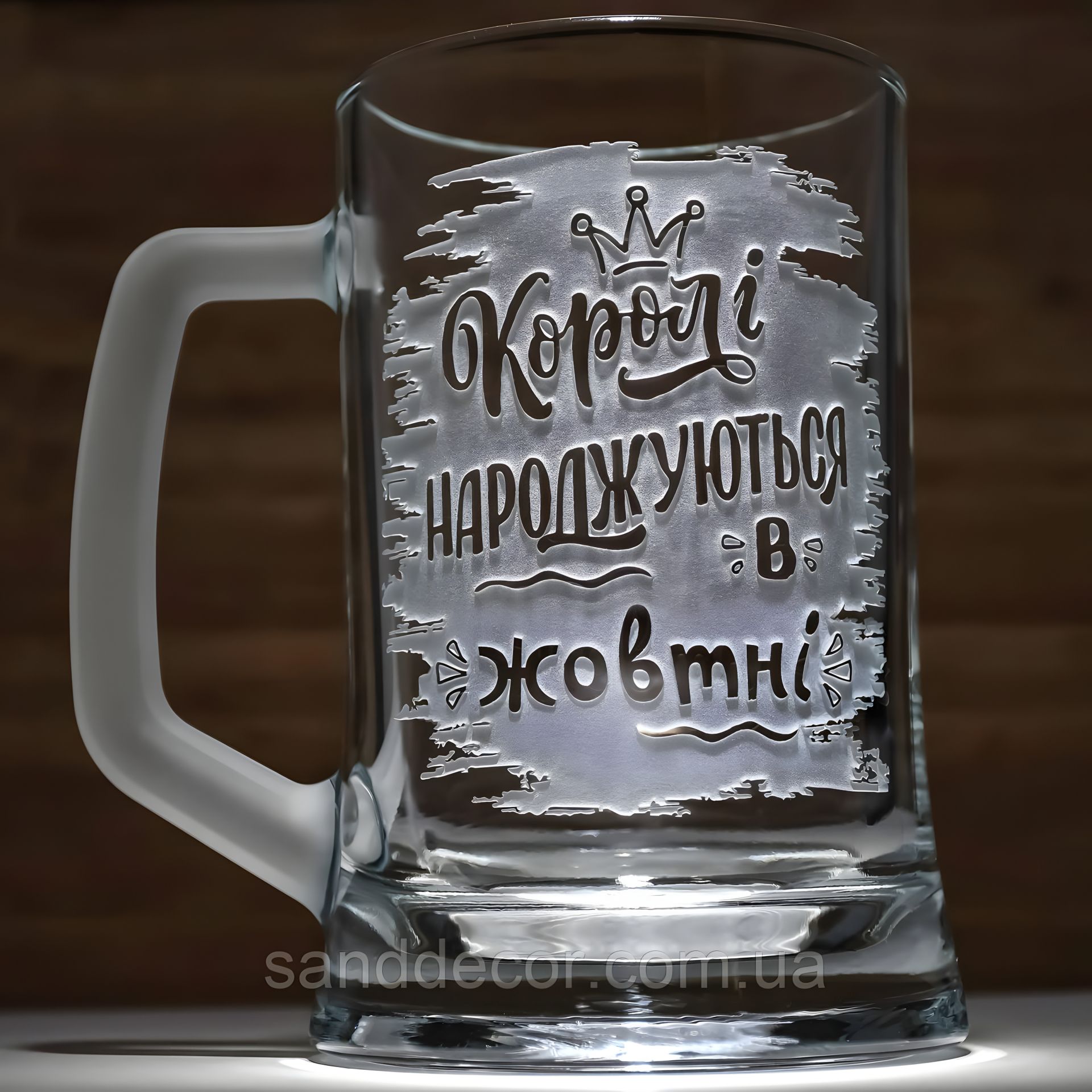 Подарок на день рождения - Пивная кружка с гравировкой "Короли рождаются в октябре" с матовой ручкой