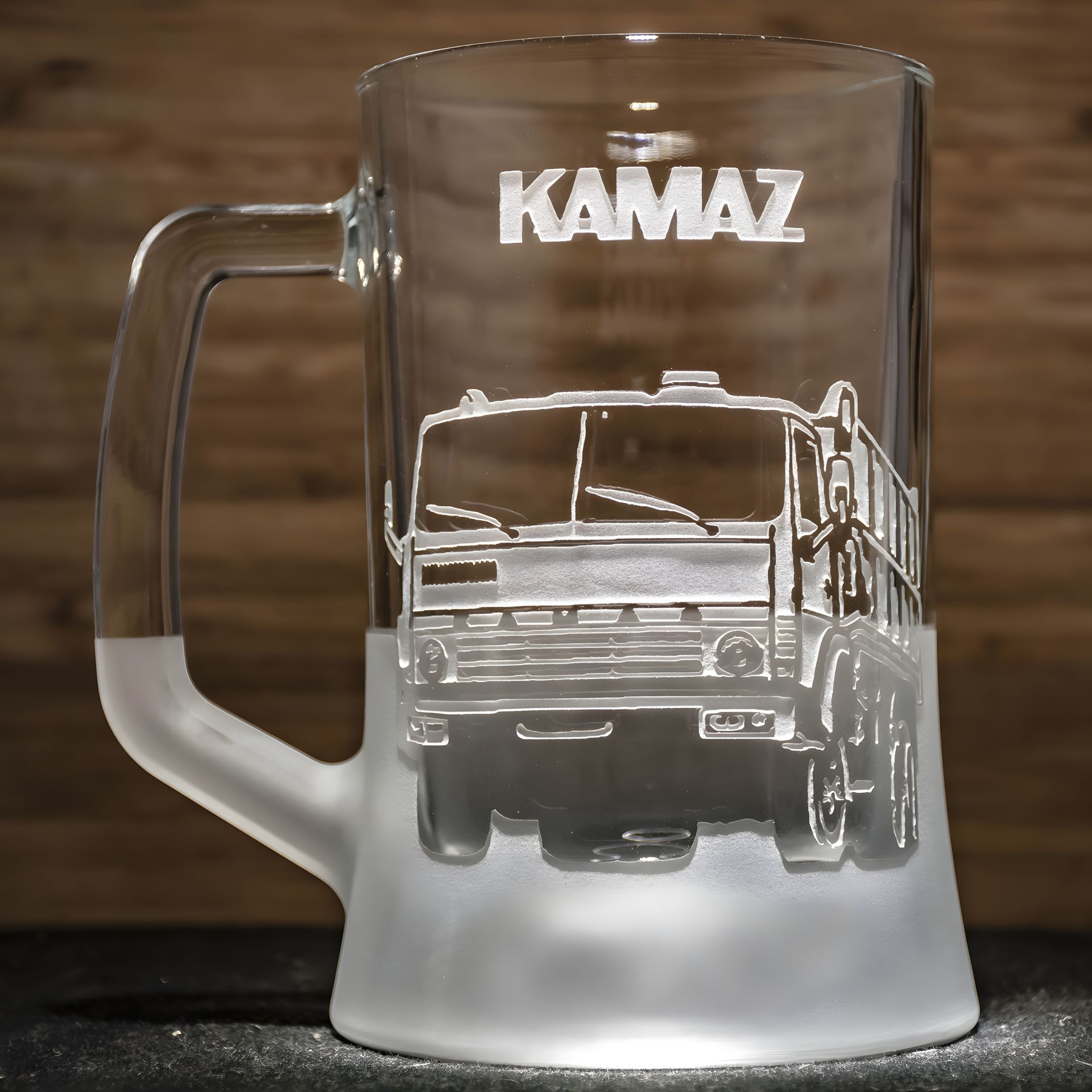 Подарочный бокал для пива с гравировкой грузовика КАМАЗ для водителя