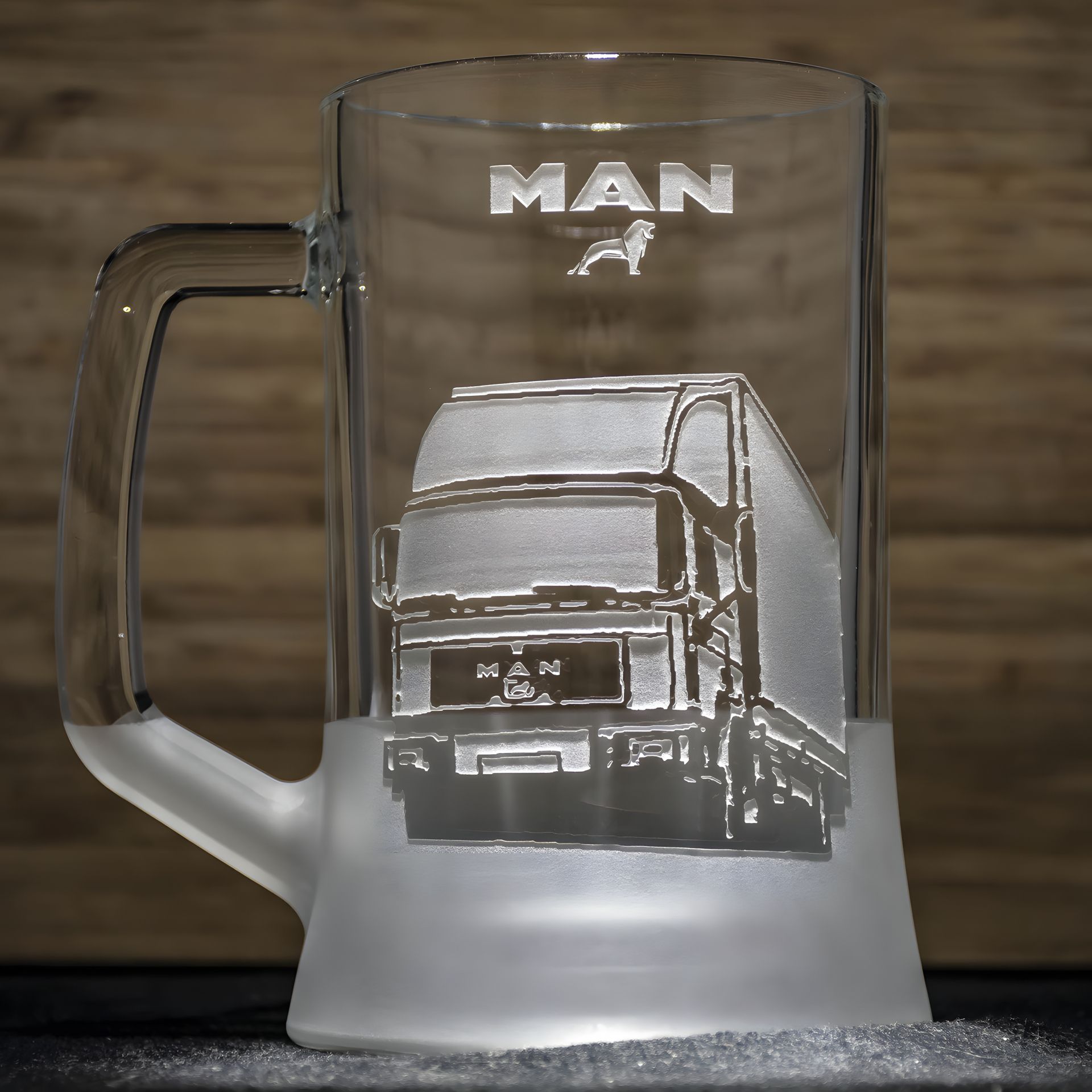 Подарок водителю грузовика - пивной бокал с гравировкой MAN фургон