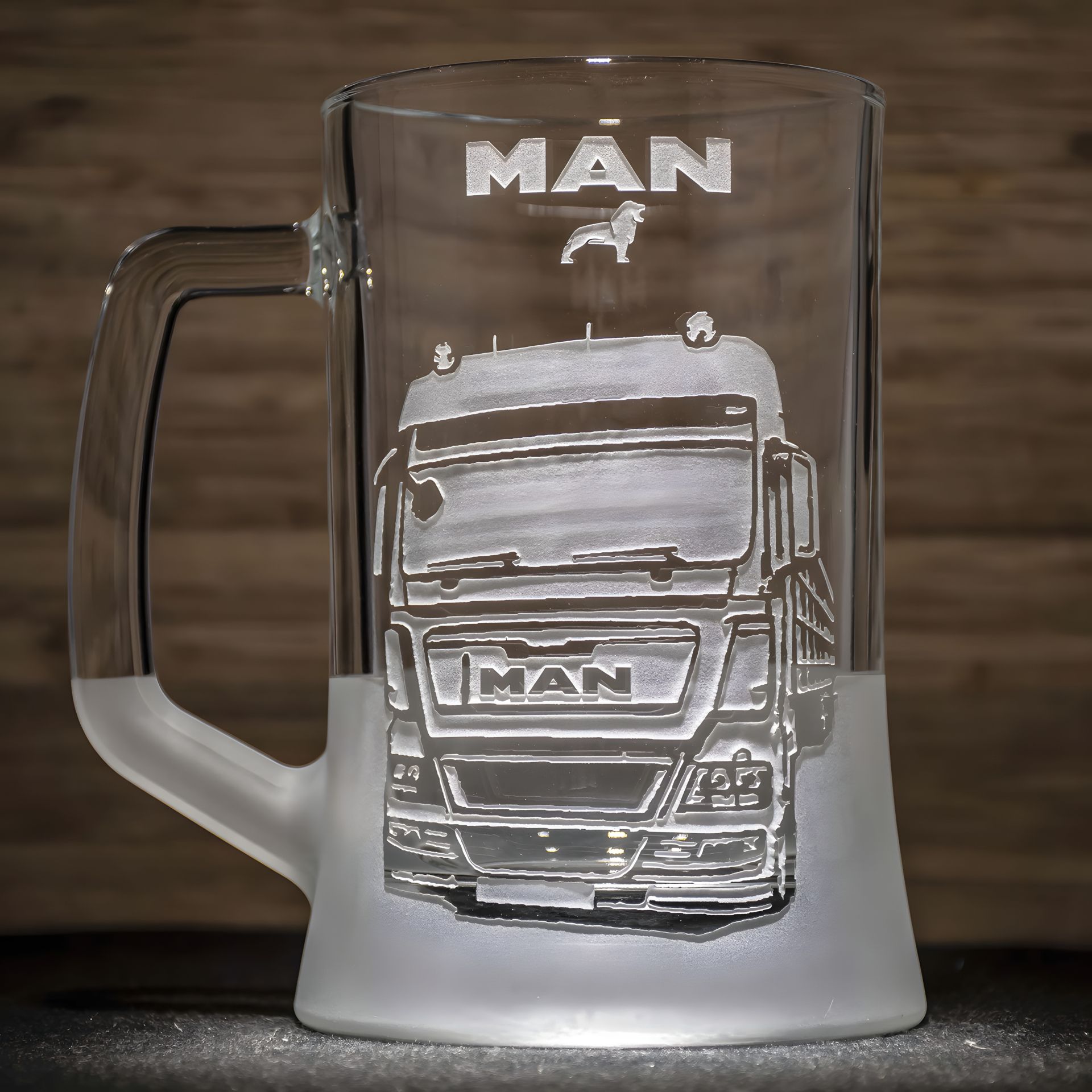 Стеклянная кружка для пива с ручной механической гравировкой MAN Зерновоз фура с полуприцепом в подарочной коробке