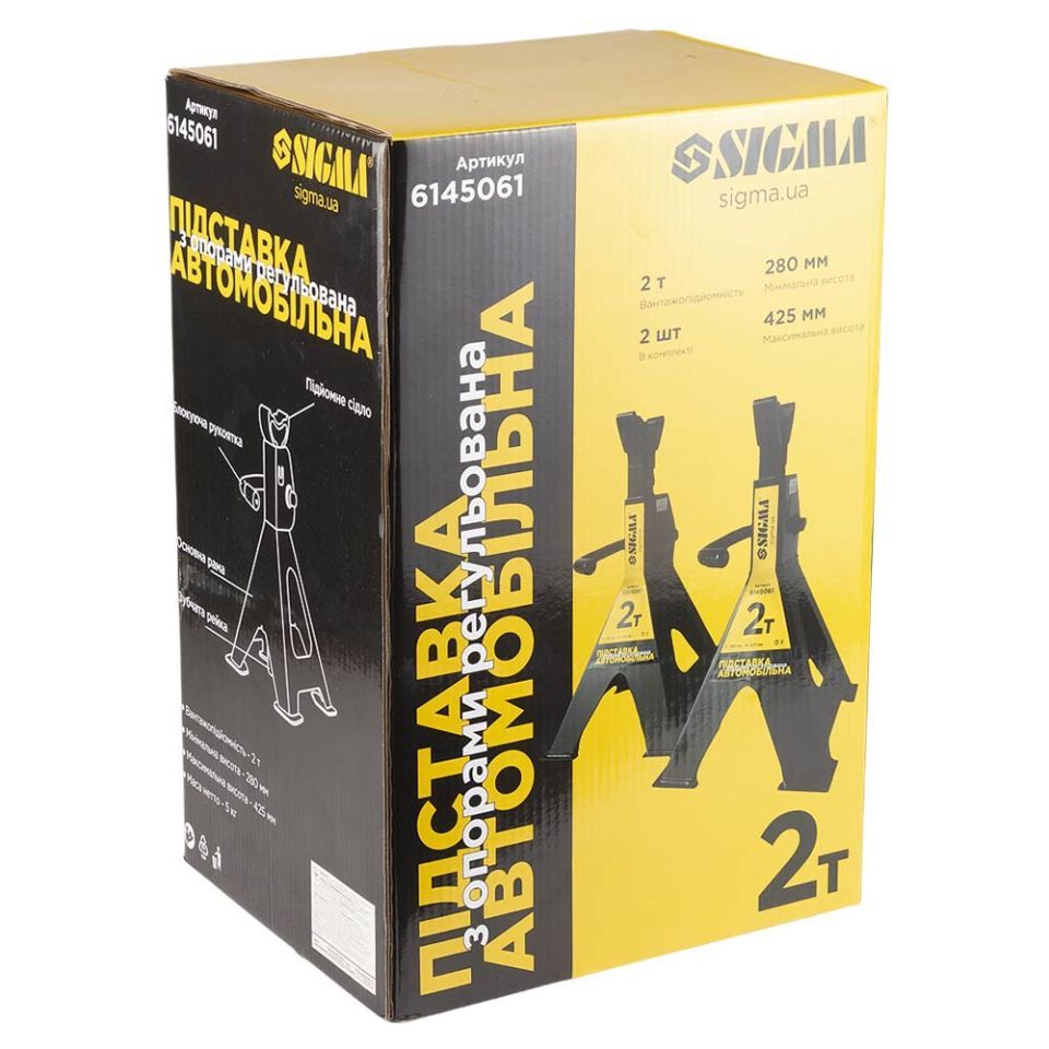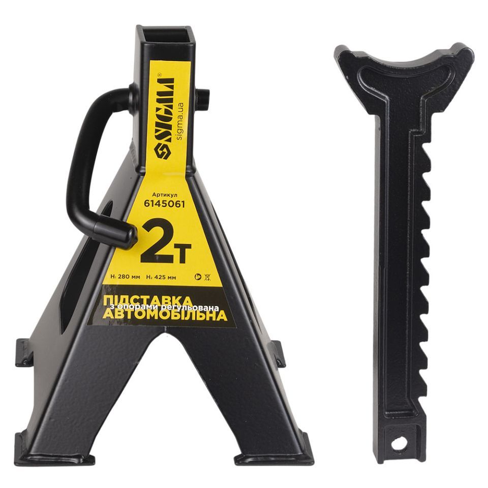 Подставка автомобильная с опорами регулируемая 2т (2шт) SIGMA (6145061) - профессиональное средство надежной фиксации и страховки при подъеме автомобиля для проведения осмотра и ремонтных работ. Рекомендуется использовать со всеми типами домкратов.