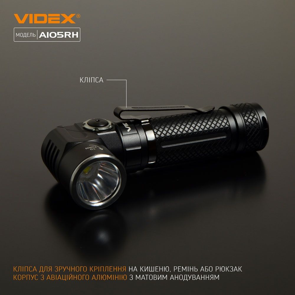Портативный светодиодный фонарик VIDEX VLF-A105RH 1200Lm 5000K предназначен для индивидуального использования в темное время суток или в помещениях без освещения. Основными показателями есть герметичность, надежный корпус, дальность света. Позволяет выбрать требуемый режим работы. Используется налобный ремень для фонаря из износостойкого материала, мягкого по текстуре, что обеспечивает удобное использование. Удобный поворотный механизм для использования как обычного фонаря, так и налобного. С помощью торцевой магнитной крышки фонарь быстро крепится к любой металлической поверхности. Максимальная яркость 1200Lm. Используется светодиод Luminus SST40, улучшающий фотоэлектрический коэффициент преобразования при достижении высокой надежности и большего результата. Длительное нажатие кнопки позволяет включить и выключить фонарь. При включенном свете фонаря кратковременное нажатие кнопки переключает режимы работы. Заблокировать/разблокировать фонарь можно двойным щелчком кнопки. Режим работы фонаря: TURBO (Турбо режим) – с наибольшей яркостью света в 1200Lm. Дистанция освещения насчитывает 135м. Продолжительность работы 1 час. Интенсивность светового потока 5200cd. Время работы в режиме TURBO – это совокупное время, испытанное с включенной защитой от перегрева. HIGH Режим максимальной мощности света – яркость света 700Lm. Дистанция освещения насчитывает 104м. Продолжительность работы 1 час. 30мин. Интенсивность светового потока 2680cd. MIDDLE (Режим средней мощности света) – яркость света 420Lm. Дистанция освещения насчитывает 80м. Продолжительность работы 2 часа. 35мин. Интенсивность светового потока 1608cd. LOW (Режим минимальной мощности света) – яркость света 220Lm. Дистанция освещения насчитывает 57м. Продолжительность работы 5 часов. 40мин. Интенсивность светового потока 816CD. MOON (Ночной режим) – наибольшая продолжительность работы возможна в данном режиме – 80час., при этом генерируется световой поток в 30Lm. Дистанция освещения насчитывает 30м. Интенсивность светового потока 300CD.