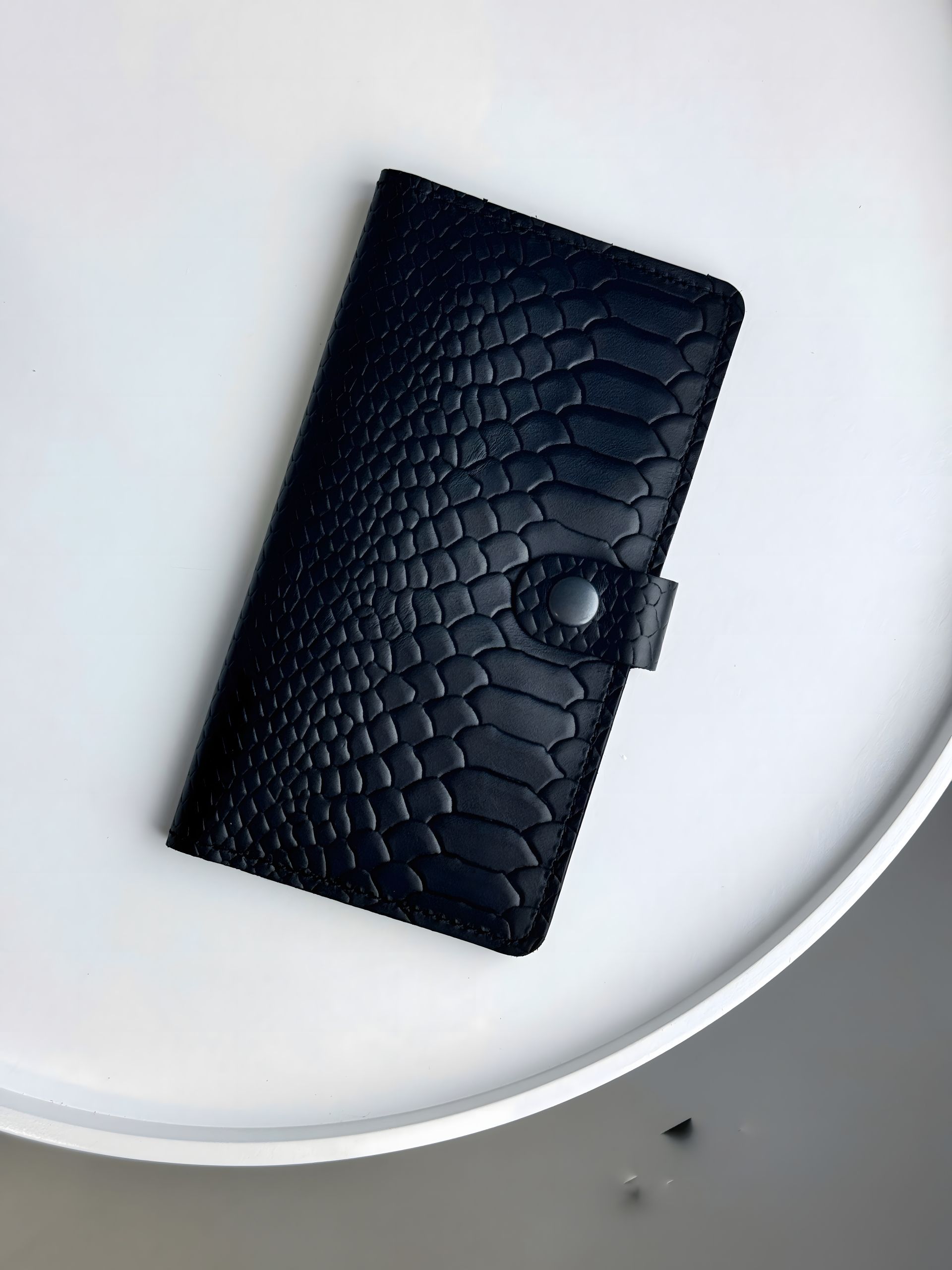 Портмоне мужское из натуральной кожи с тиснением под питона, черное