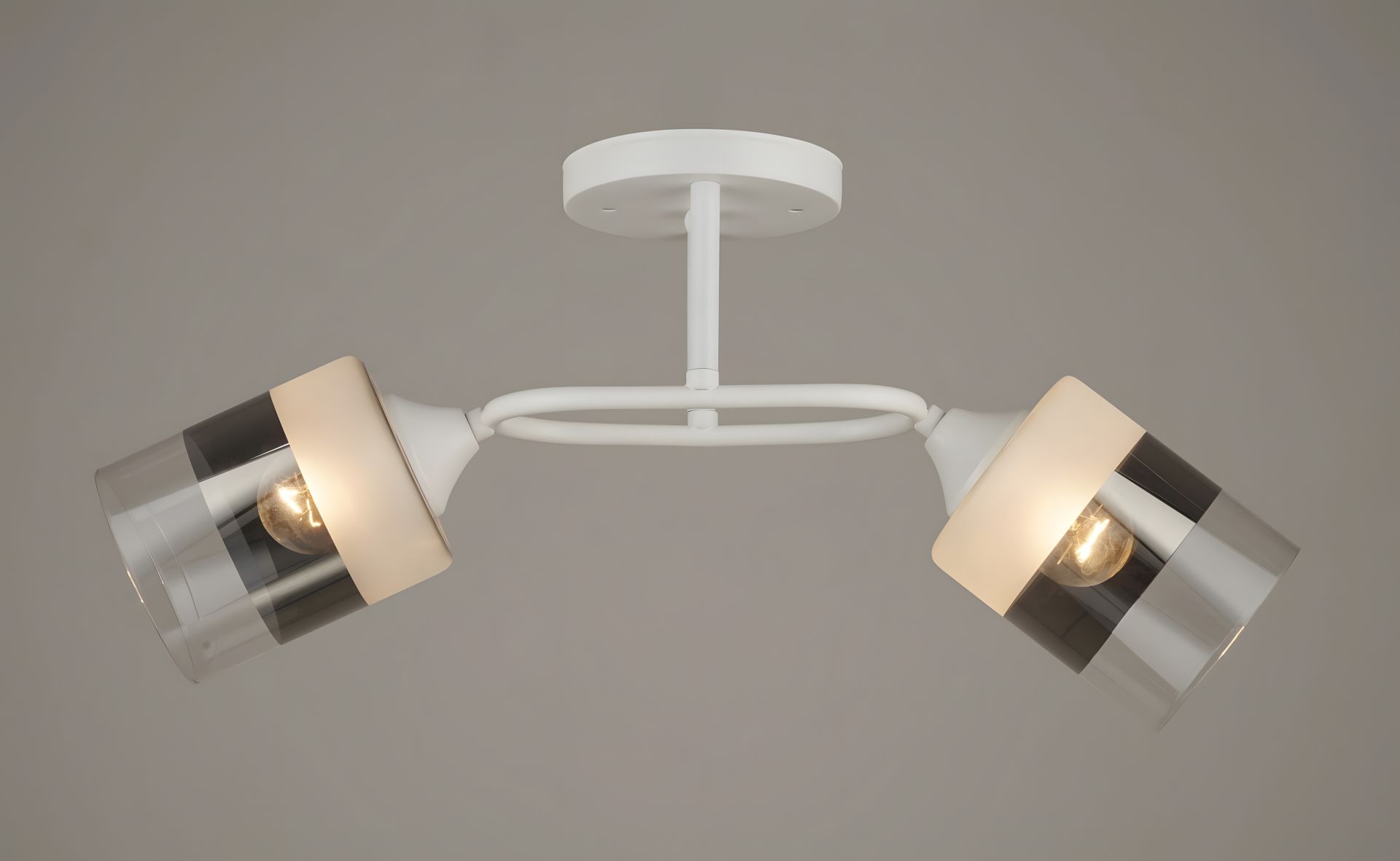 Каркас изготовлен из высококачественного металла белого цвета, что придает изделию современный вид. Два стеклянных плафона подчеркивают изысканность люстры, обеспечивая приятный, равномерный свет.