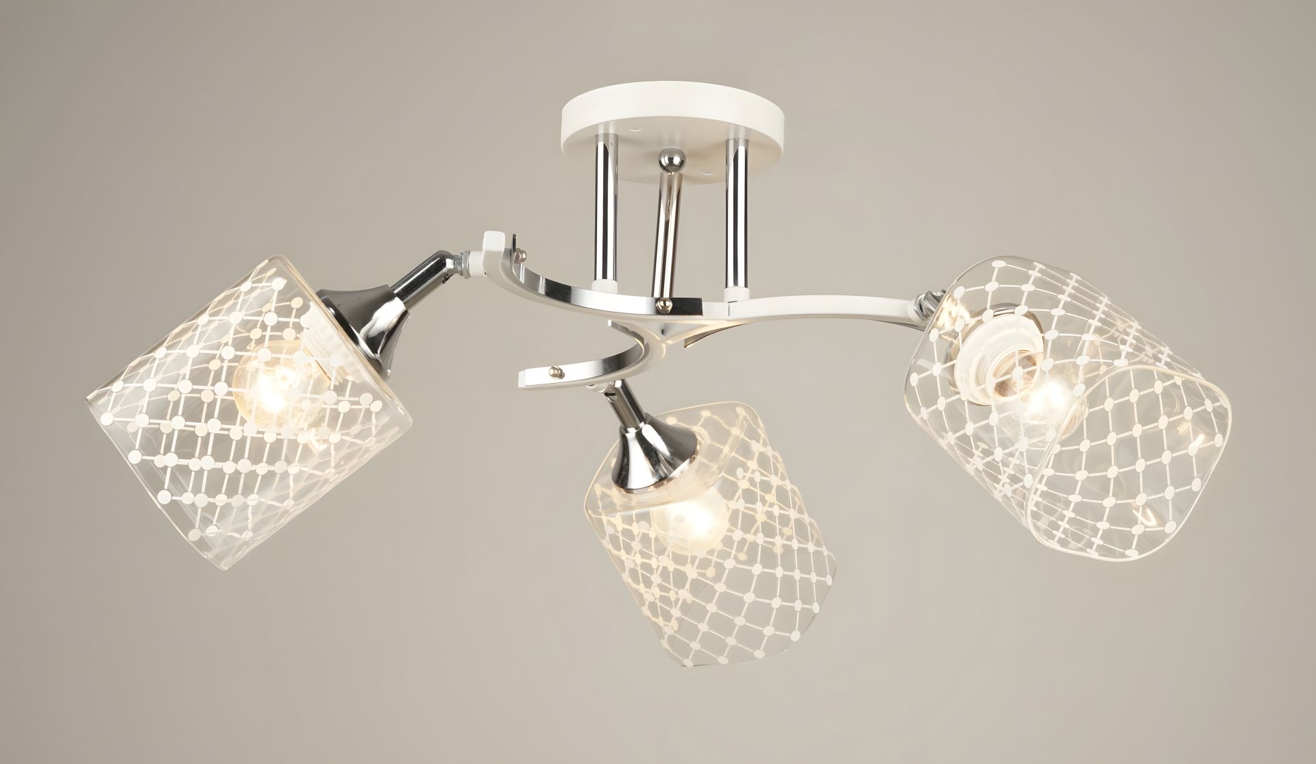 - Три стеклянных плафона для мягкого и равномерного освещения