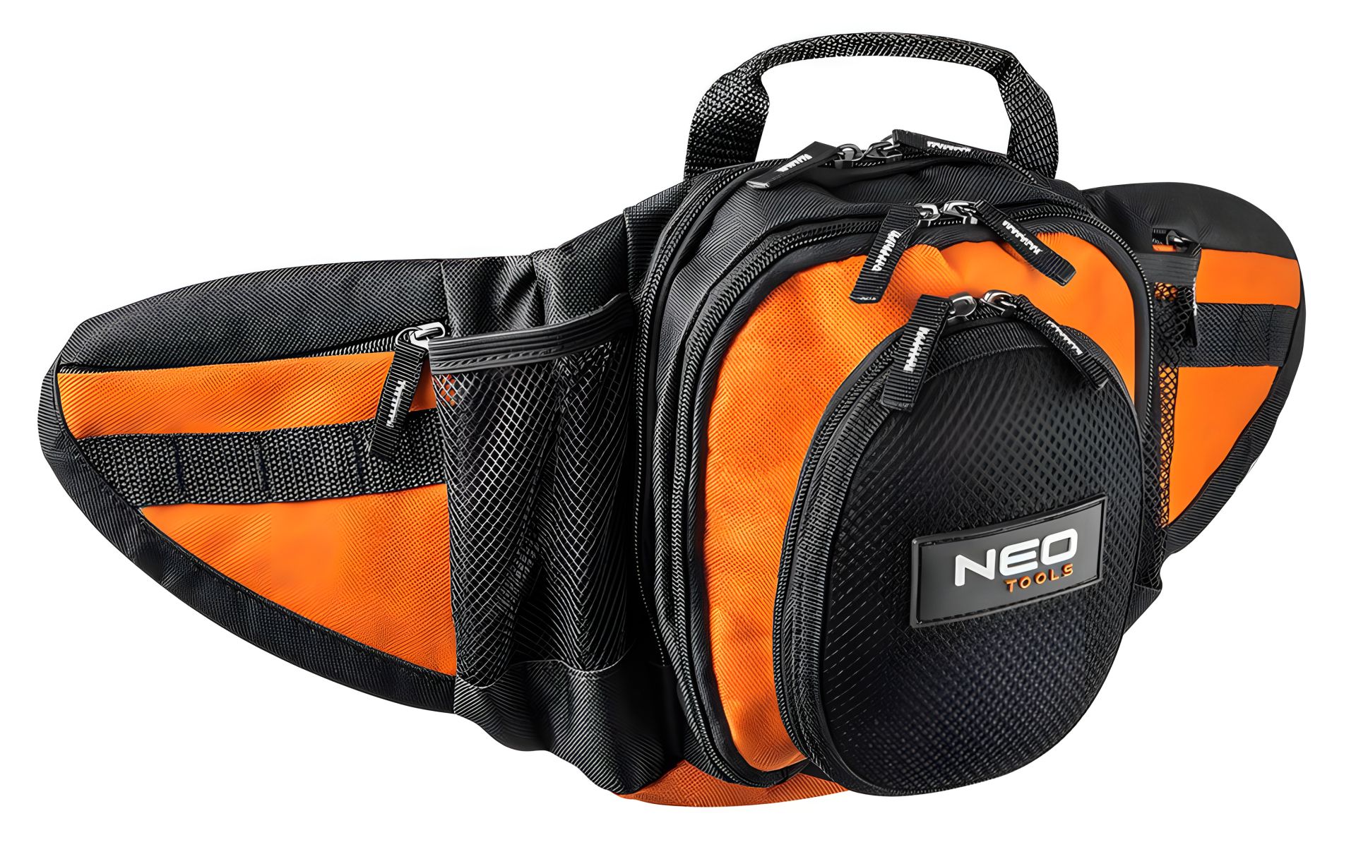 Пояс для инструмента NEO из упрочненного полиэстера, 5 внутренних карманов и 5 наружных карманов. Два вместительных основных отдела помещают большое количество инструмента и документов. Регулируемый ремень и ручка для переноски облегчают эксплуатацию.
