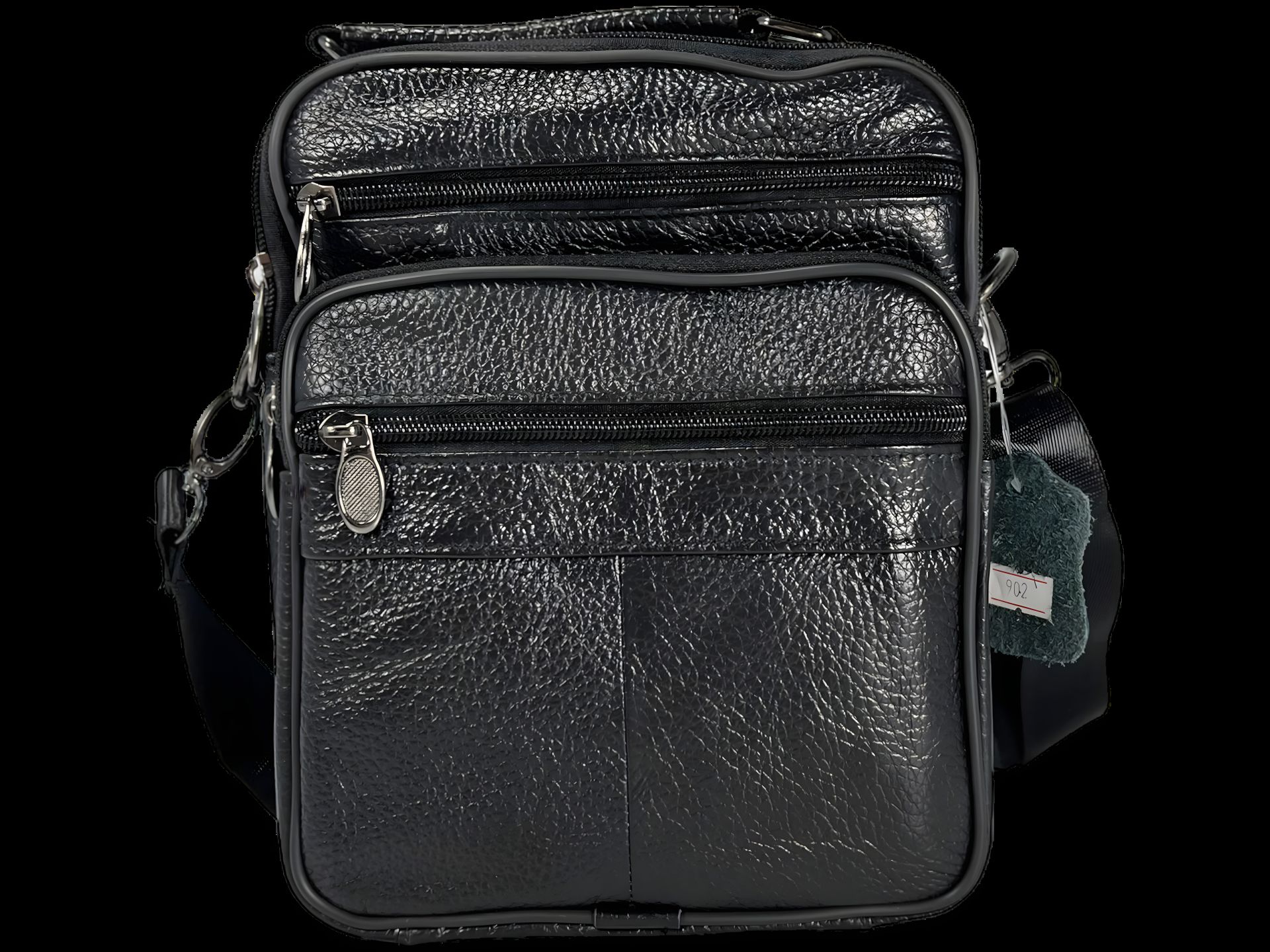 Кожаная сумка через плечо на четыре отделения, чёрная, 3 л, с ручками для переноса