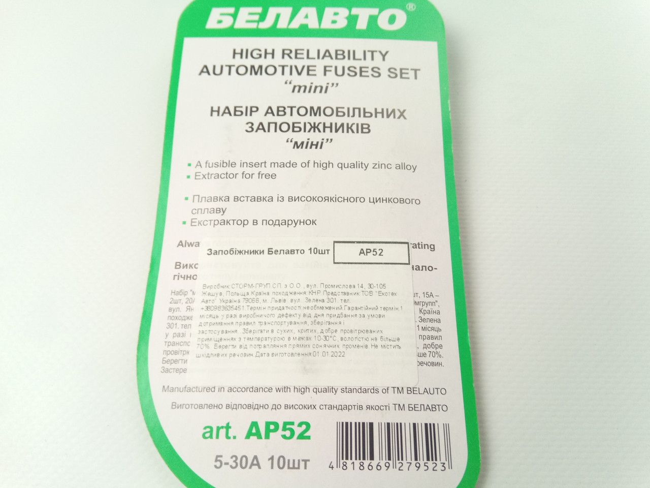 Предохранители AP52 (плоские) МИНИ, к-т 10 шт.
