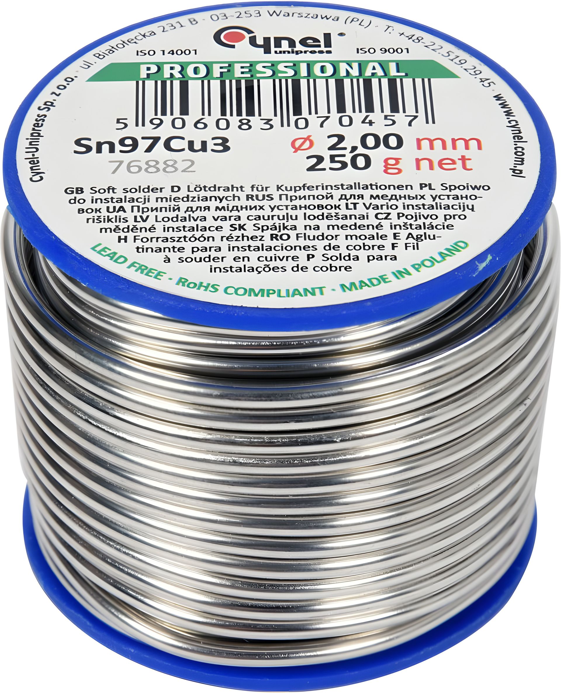 Припой для пайки меди CYNEL, Ø 2 мм, проволочный на катушке 250 г.