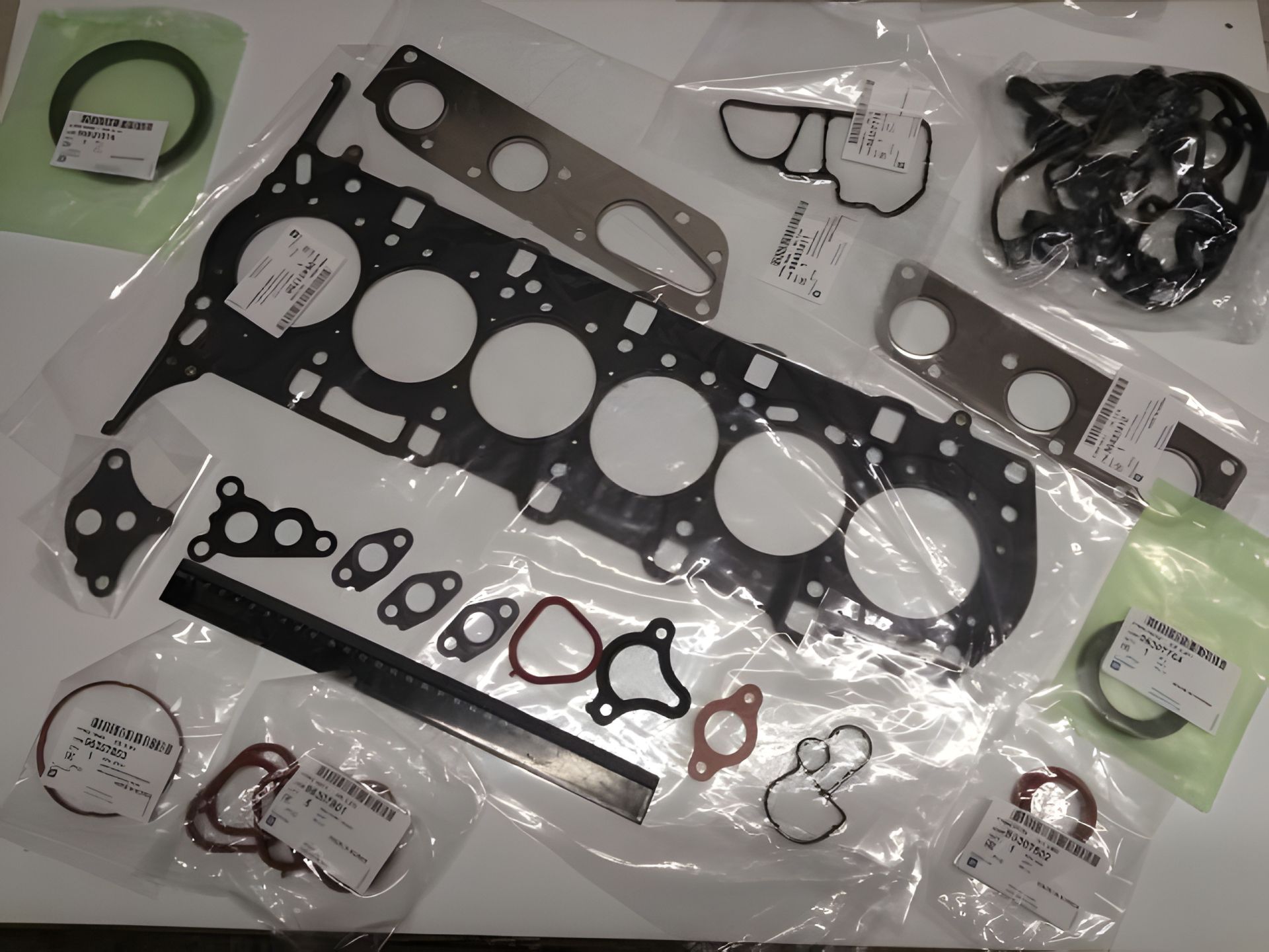 Комплектация: 96451758 - прокладка ГБЦ (1 шт) 96307727 - прокладка клапанной крышки (1 шт) 96307801 - прокладка коллектора впускного (6 шт) 96493410 - прокладка коллектора выпускного (1 шт) 96493411 - прокладка коллектора выпускного (1 шт) 96307803- прокладка корпуса дроссельной заслонки (1 шт) 96307802 - прокладка клапана рециркуляции выхлопных газов (1 шт) 96352576 - прокладка клапана EGR (1 шт) 96389190 - прокладка кронштейна масляного фильтра (1 шт) 96499316 - прокладка корпуса маслонасоса (1 шт) 96307854 - прокладка трубки рециркуляции отработанных газов (2 шт) 96307748 - прокладка водяного фланца (1 шт) 96307776 - прокладка корпуса помпы и термостата (1 шт) 96307764 - сальник коленвала передний (1 шт) 96521516 - сальник коленвала задний (1 шт)