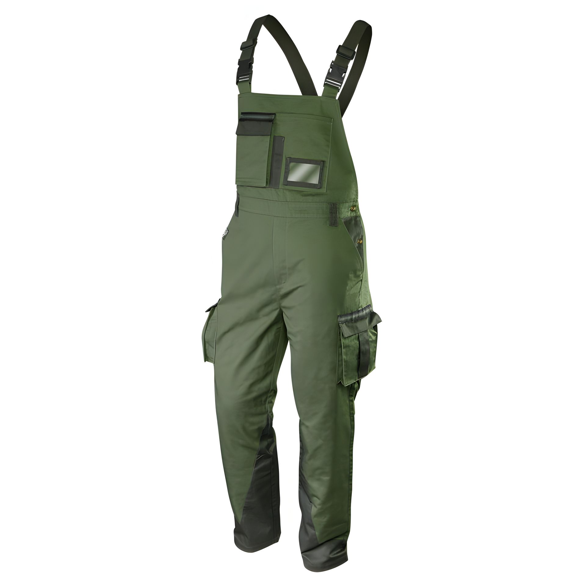 Полукомбинезон рабочий NEO серии CAMO из высококачественной хлопчатобумажной ткани с полиэстером. Эластичные регулируемые лямки и резинка в задней части пояса позволяют подогнать полукомбинезон по фигуре, обеспечивая, тем самым, комфорт работы. Благодаря плотным, вместительным и прочным карманам, необходимый инструмент можно носить при себе, а дополнительные карманы для бейджика и авторучки повышают функциональность. Благодаря модному оливковому цвету с контрастными вставками и современному фасону, брюки можно носить и в свободное от работы время. Качество гарантирует европейский сертификат СЕ. Бренд NEO оправдывает ожидания профессионалов.