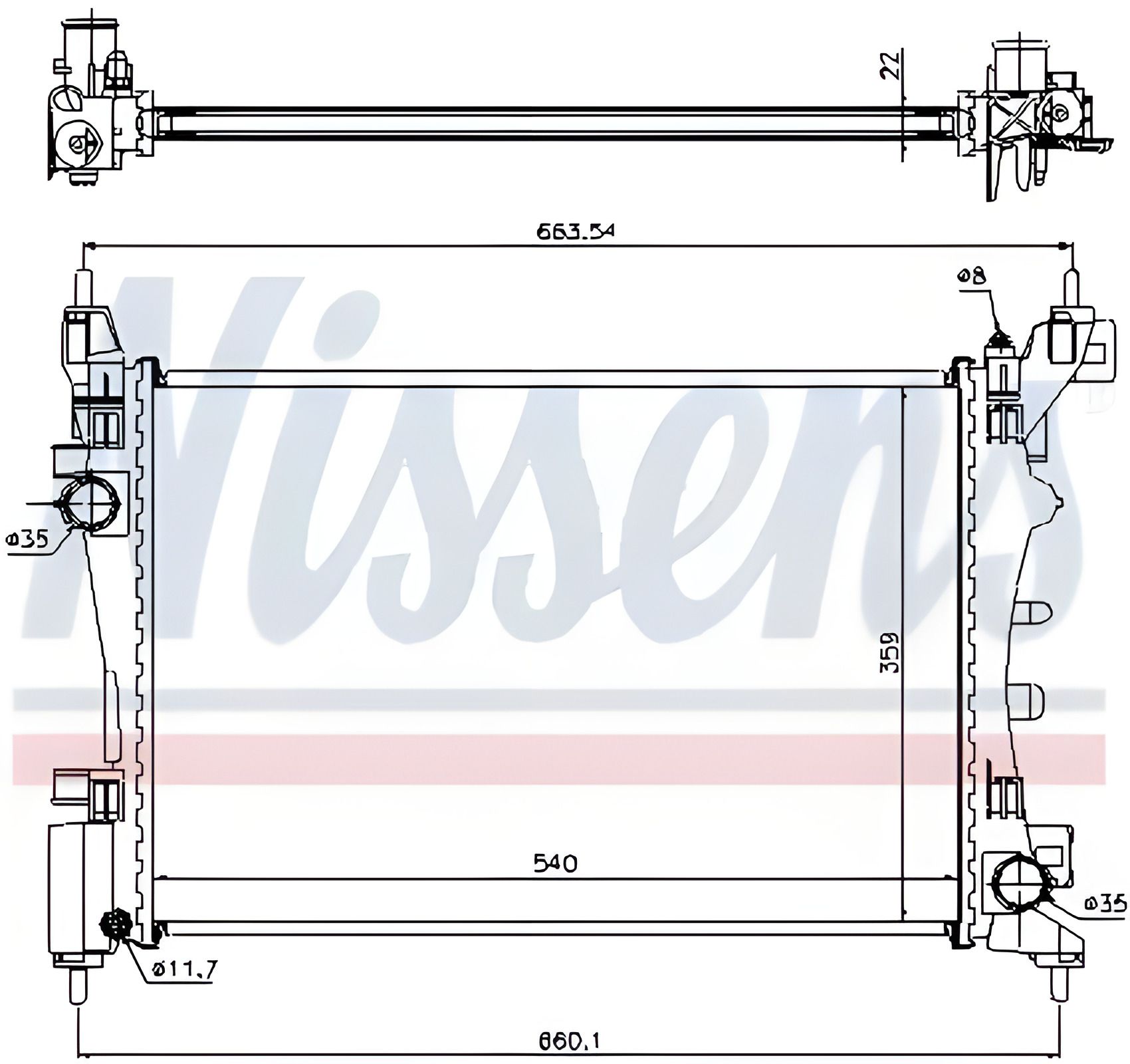 Двигательный радиатор охлаждения для FIAT QUBO, PEUGEOT BIPPER, NISSENS (636005)
