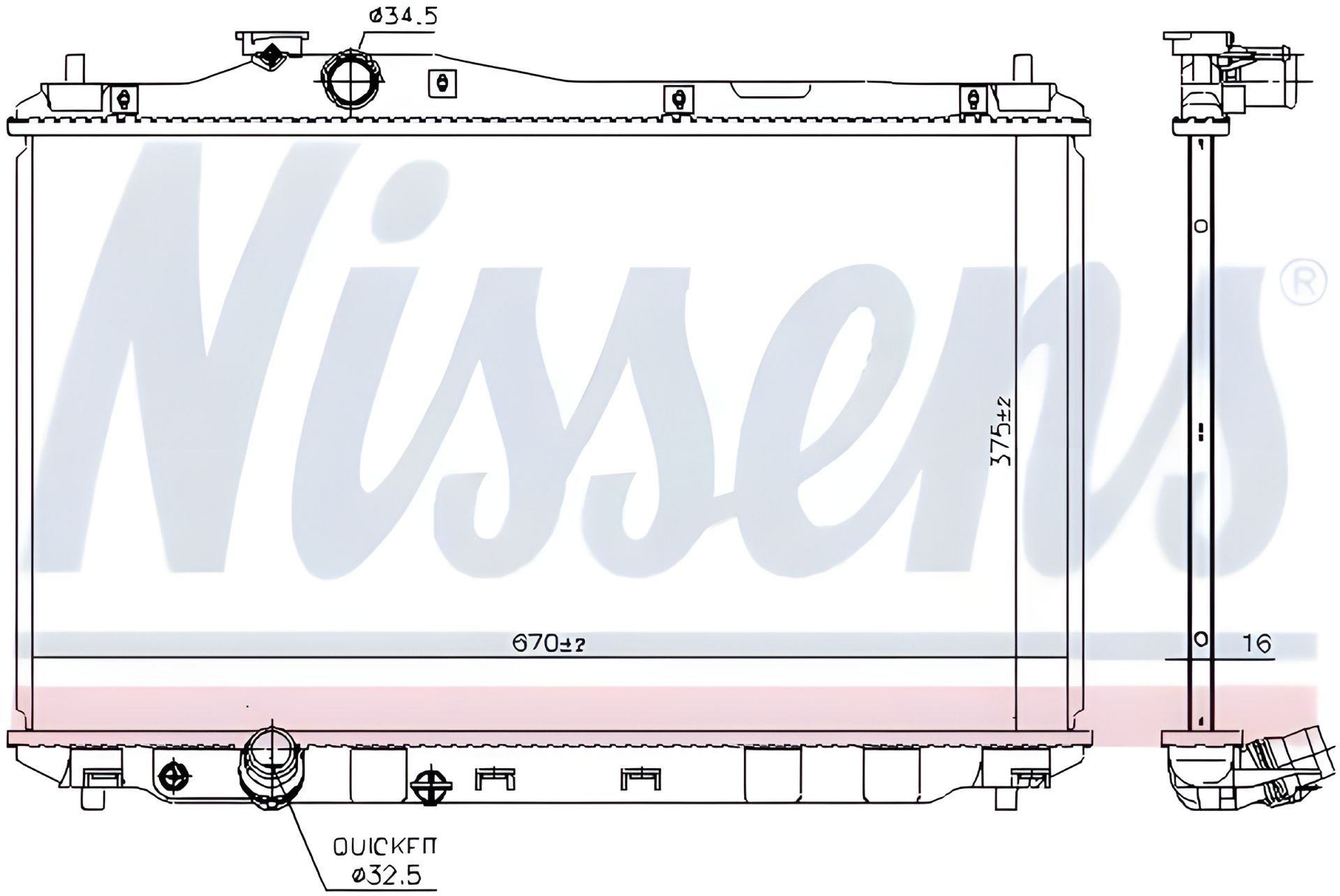 Радиатор для охлаждения двигателя HONDA CIVIC, NISSENS (68093)