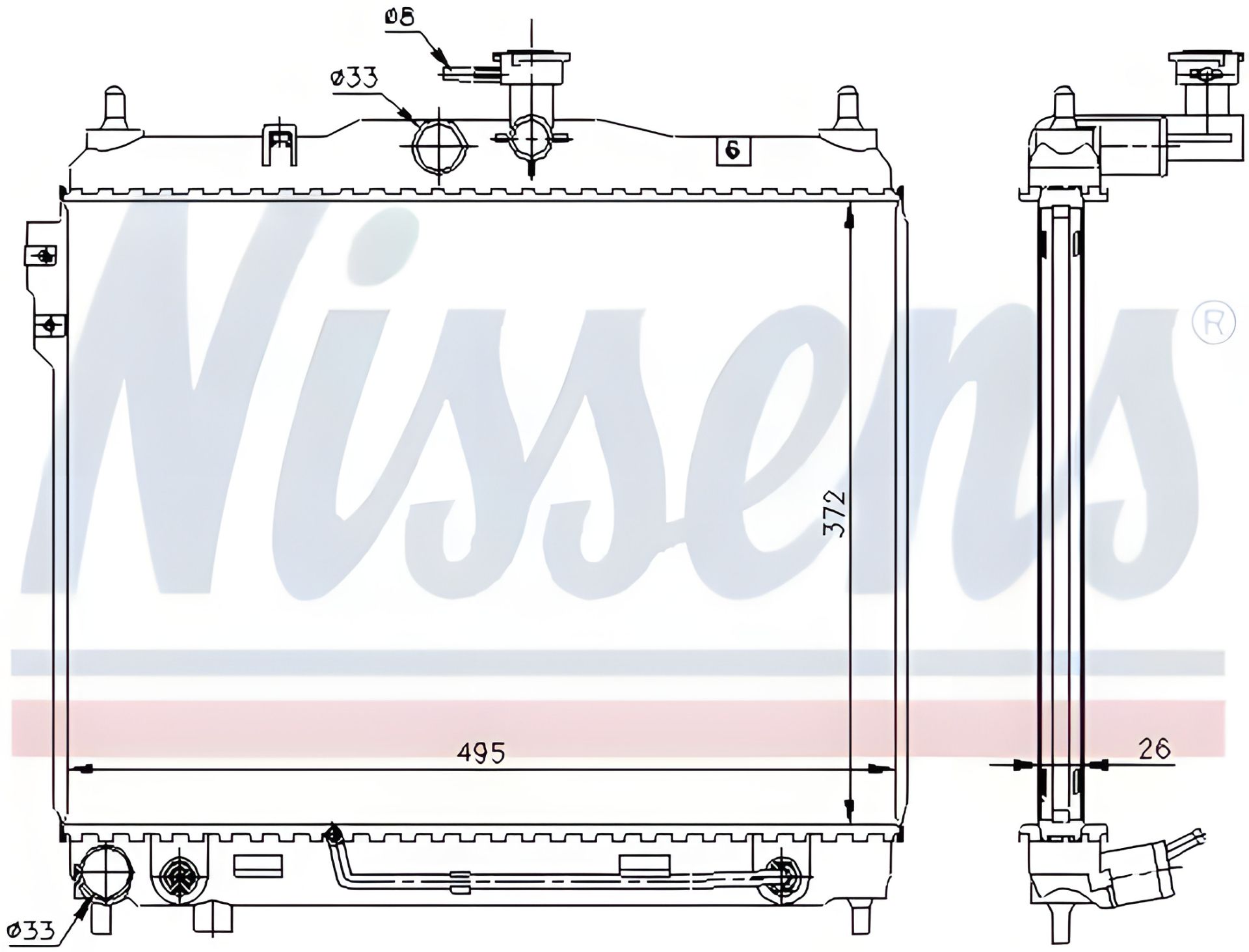 Радиатор двигателя охлаждения HYUNDAI GETZ, NISSENS (67487)