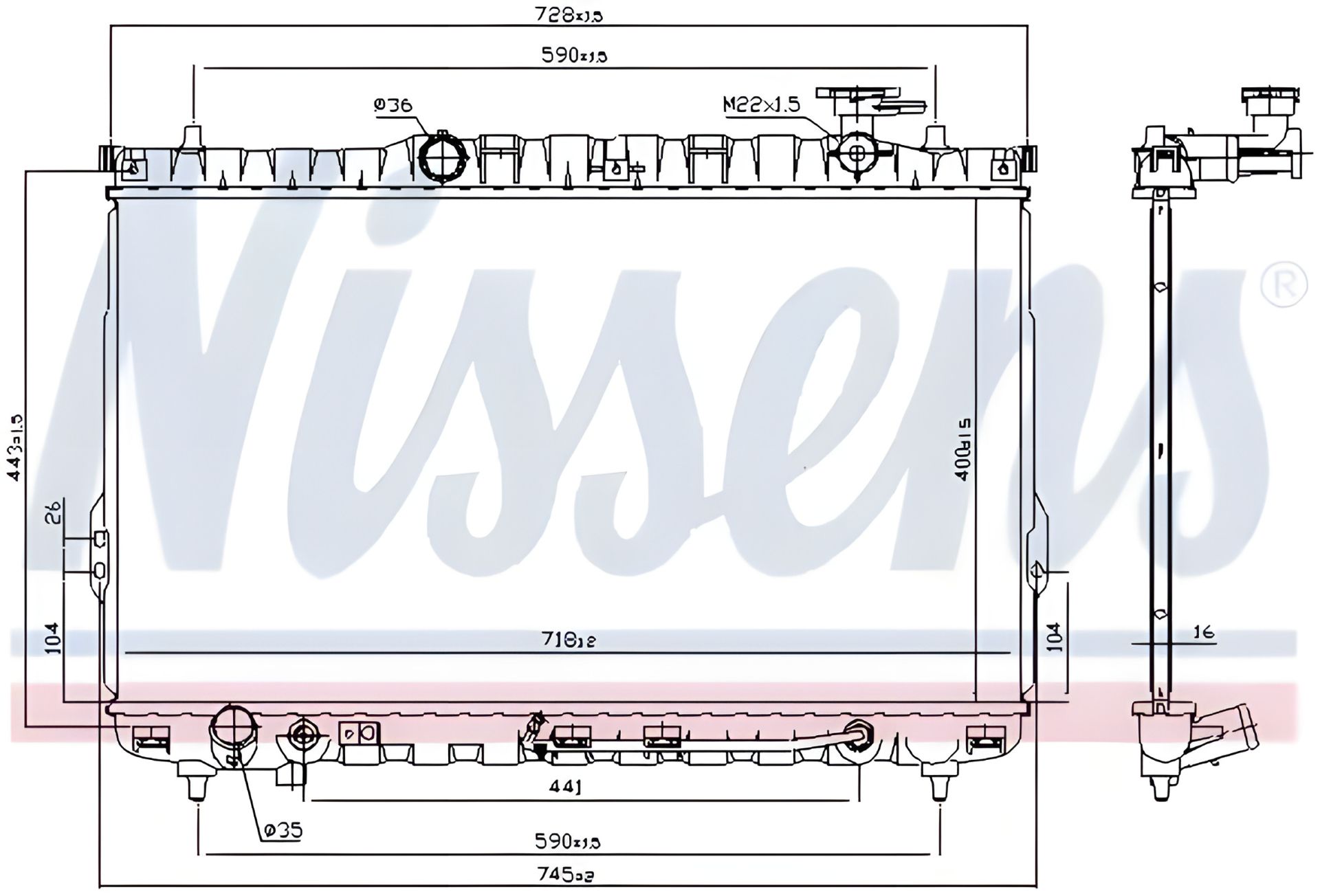Радиатор двигателя охлаждения SANTA FE (SM) 00-, NISSENS (67030)