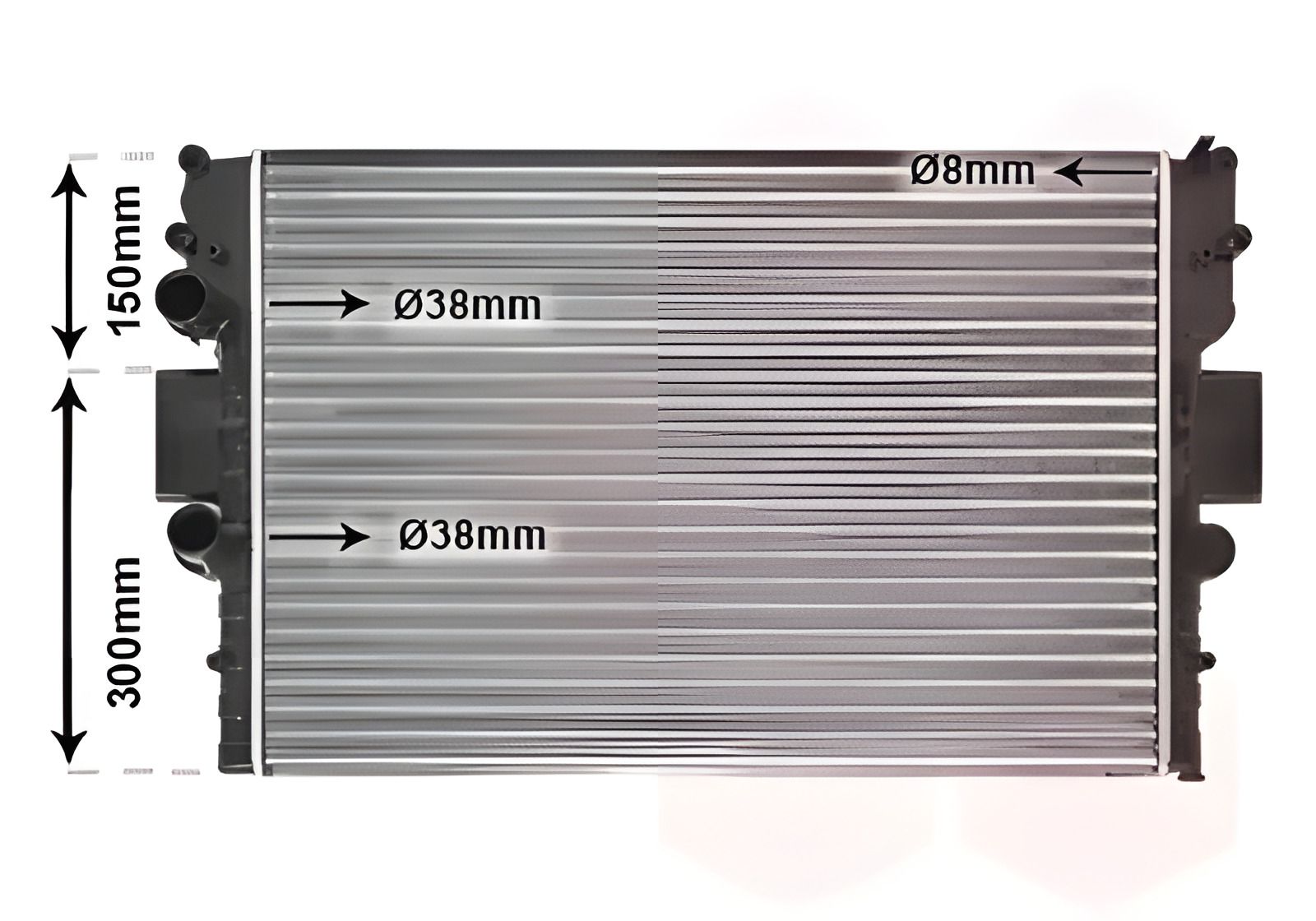 Размеры радиатора : 650x440x32 Материал ребра охлаждения : алуминовый Конструкция радиатора : Ребра охлаждения присоединены механически Материал бачка (радиатор) : пластиковый IVECO 504152996 504152995