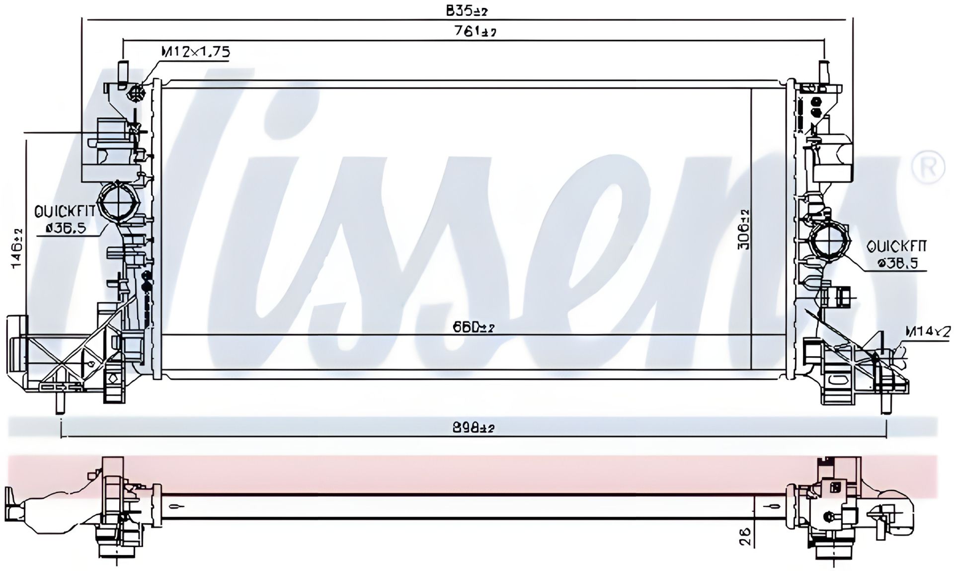 Радиатор охлаждения двигателя для VAUXHALL ASTRA и OPEL ASTRA, NISSENS (630797)