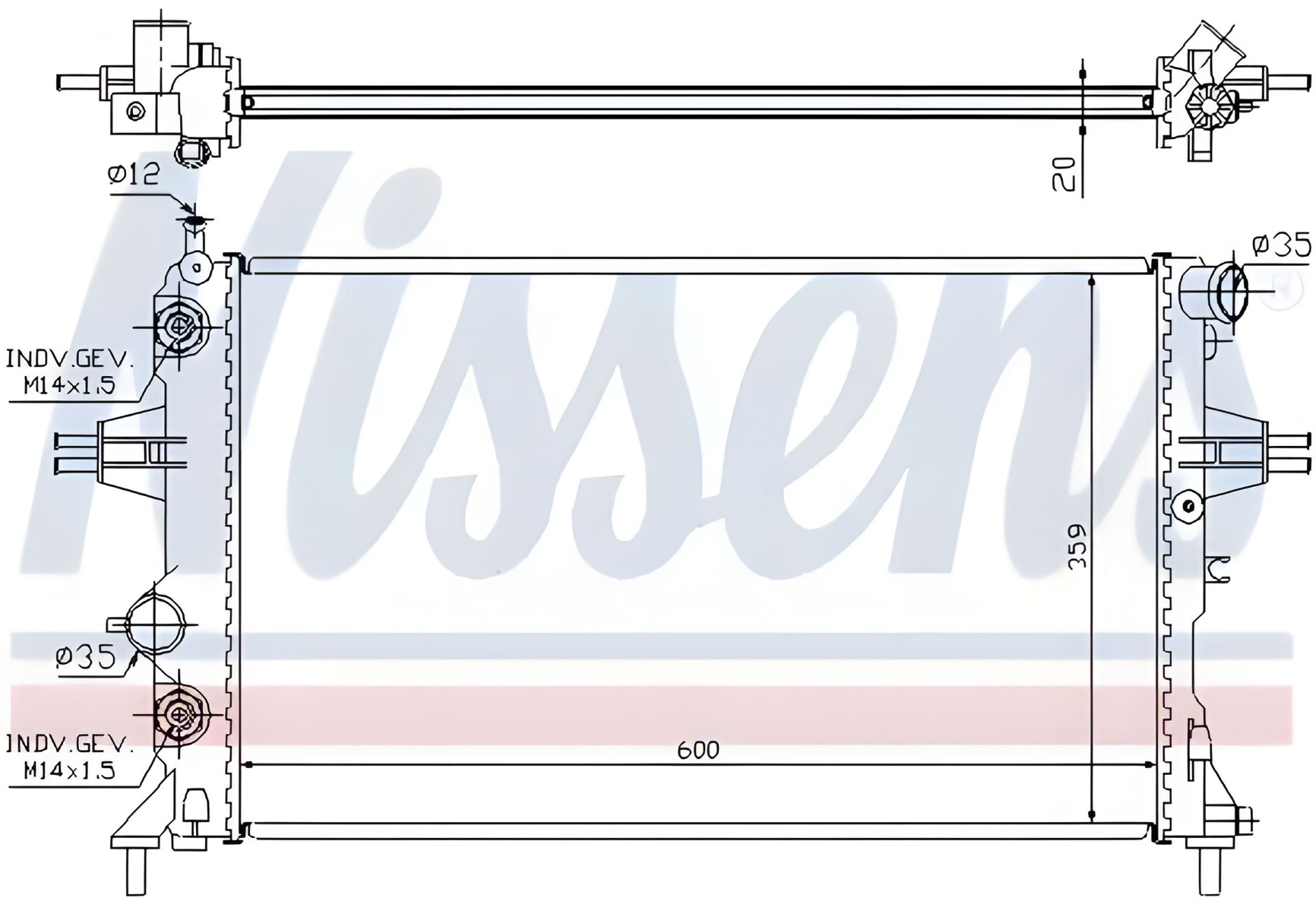 Охлаждающий радиатор двигателя для VAUXHALL ASTRA, OPEL ASTRA, NISSENS (632461)