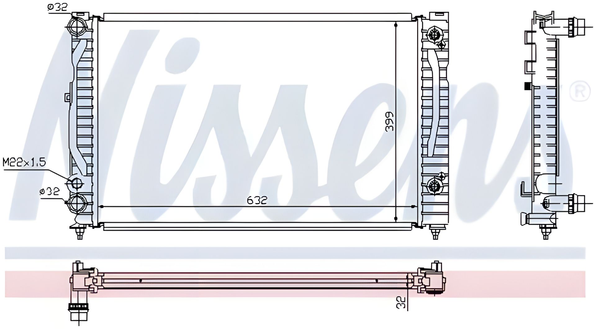 Двигательный радиатор охлаждения VW PASSAT, AUDI A4, NISSENS (60499)