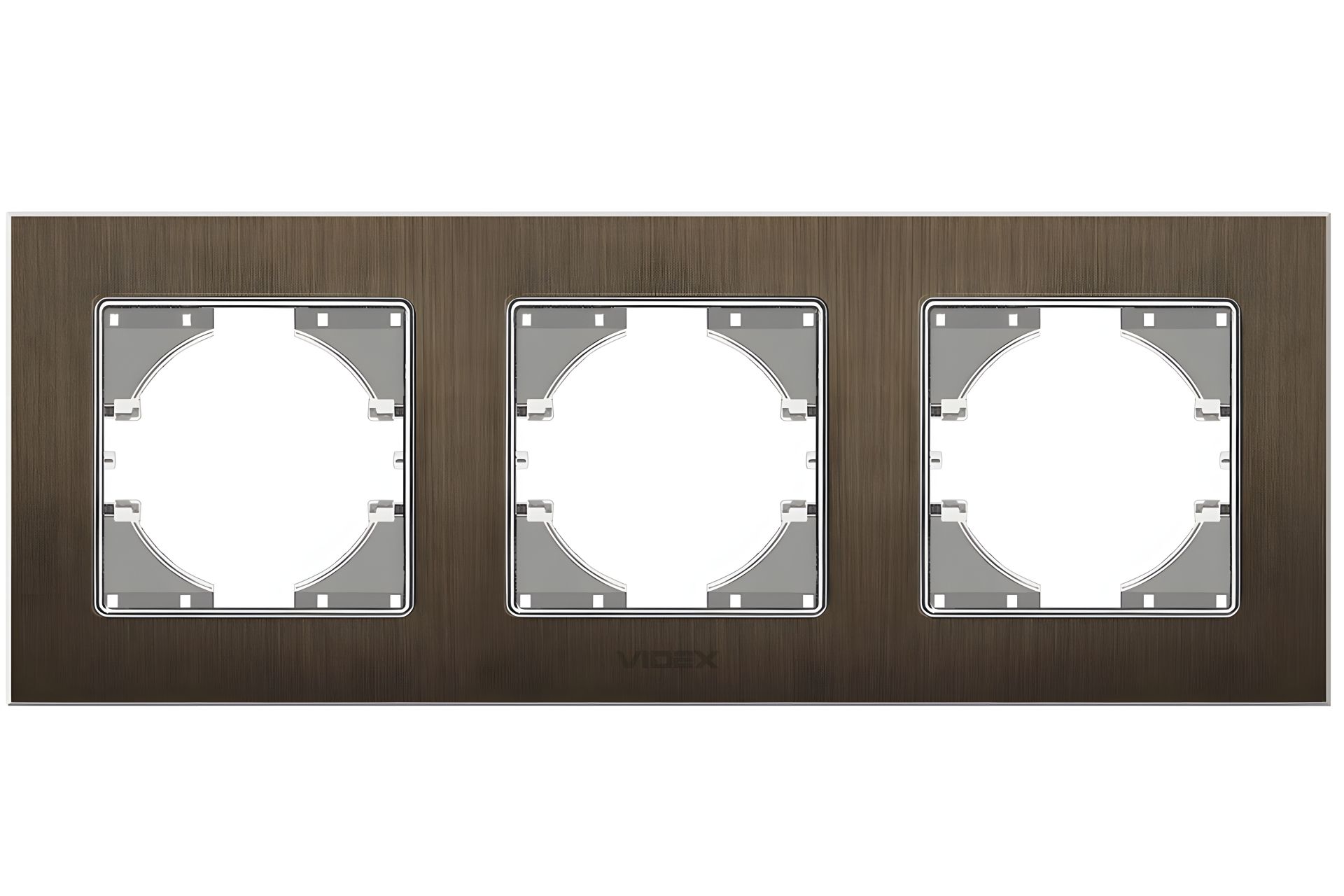 Алюминиевая рамка VIDEX BINERA шоколадная на 3 поста VF-BNFRA3H-CH
