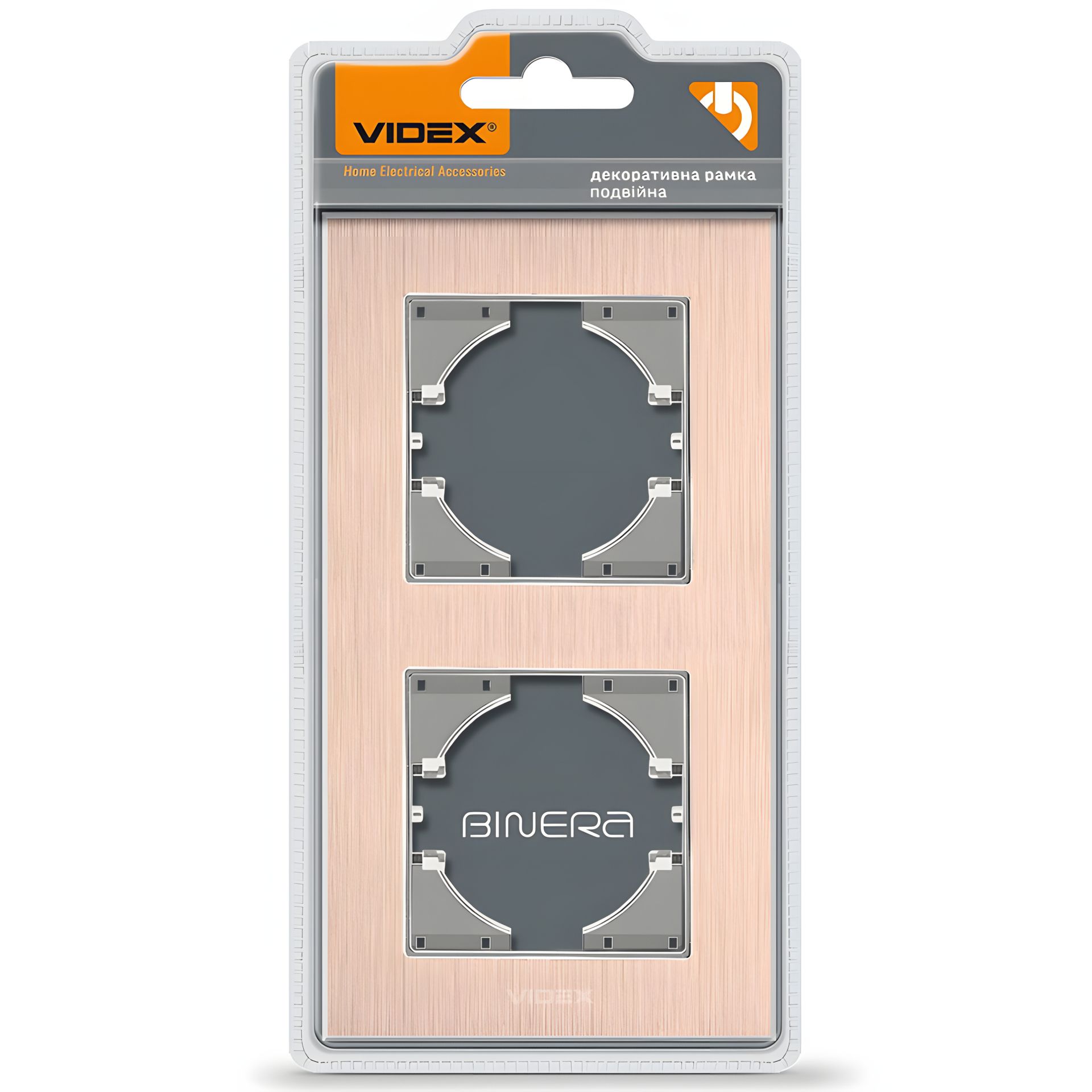 Алюминиевая вертикальная рамка на 2 поста VIDEX BINERA VF-BNFRA2V-CP медного цвета